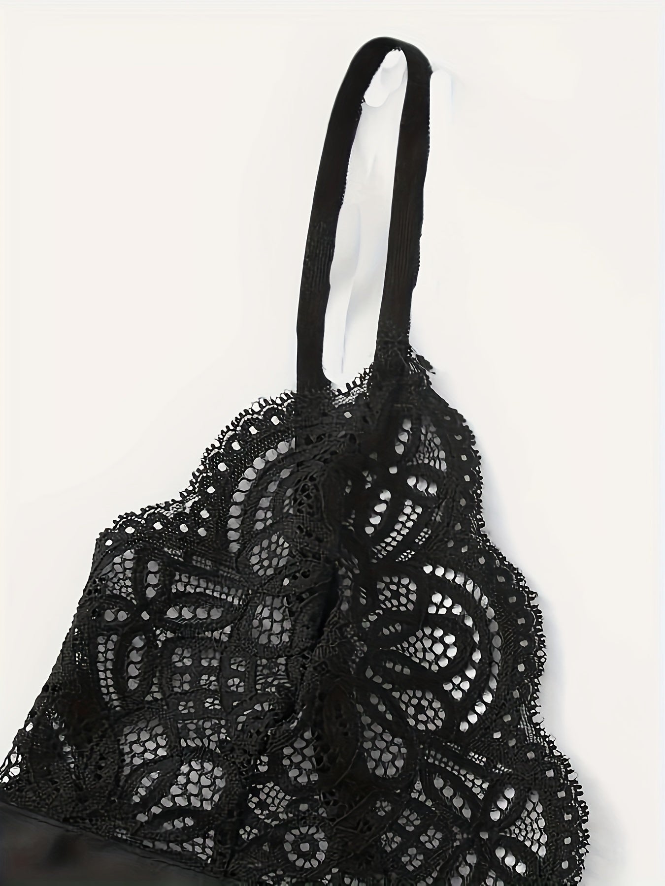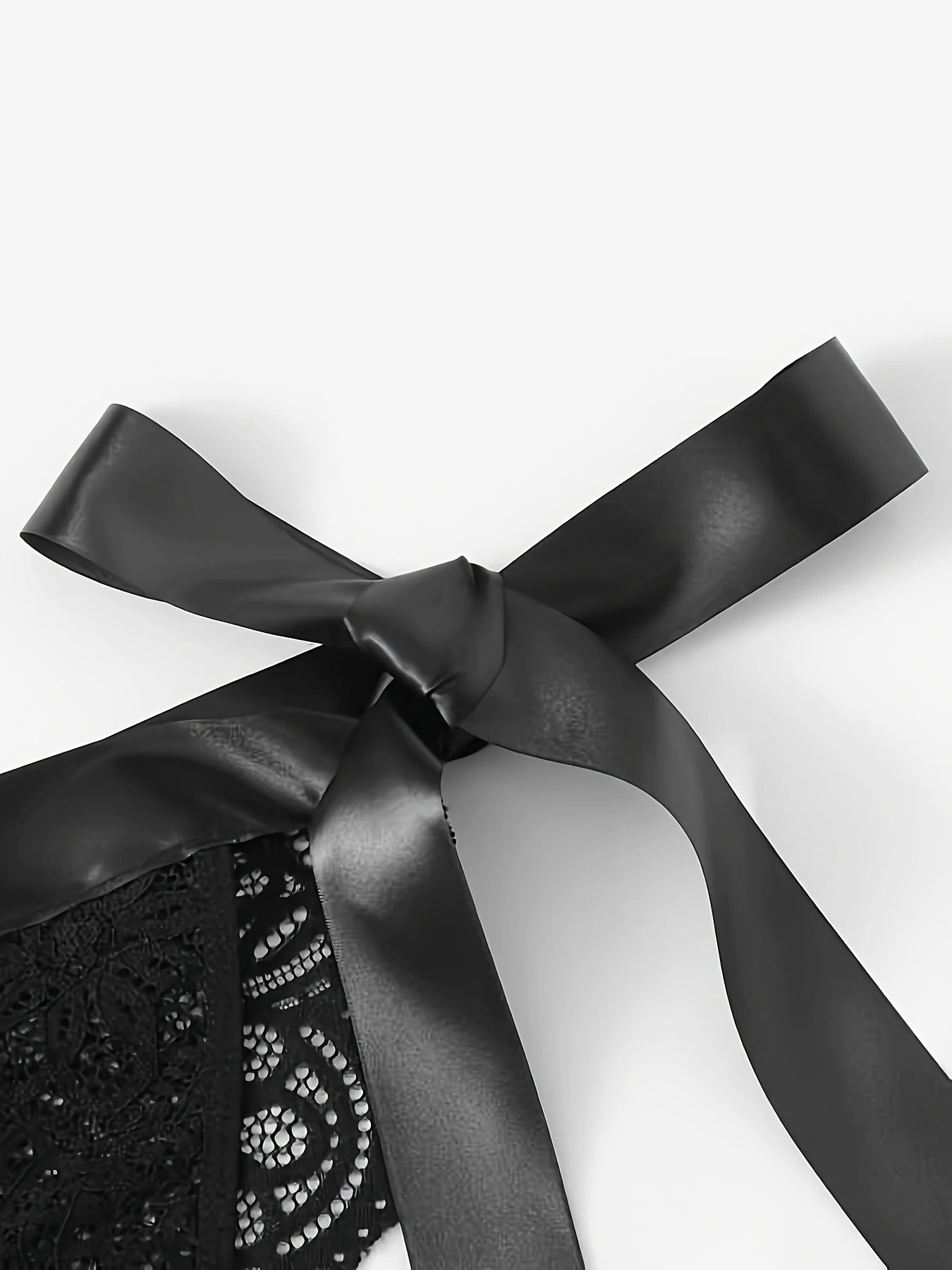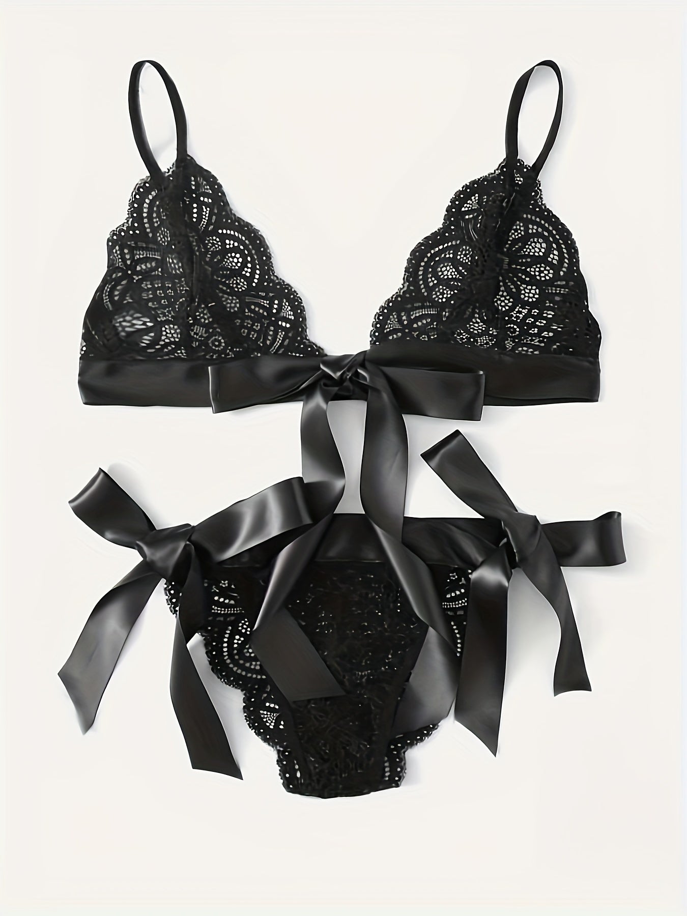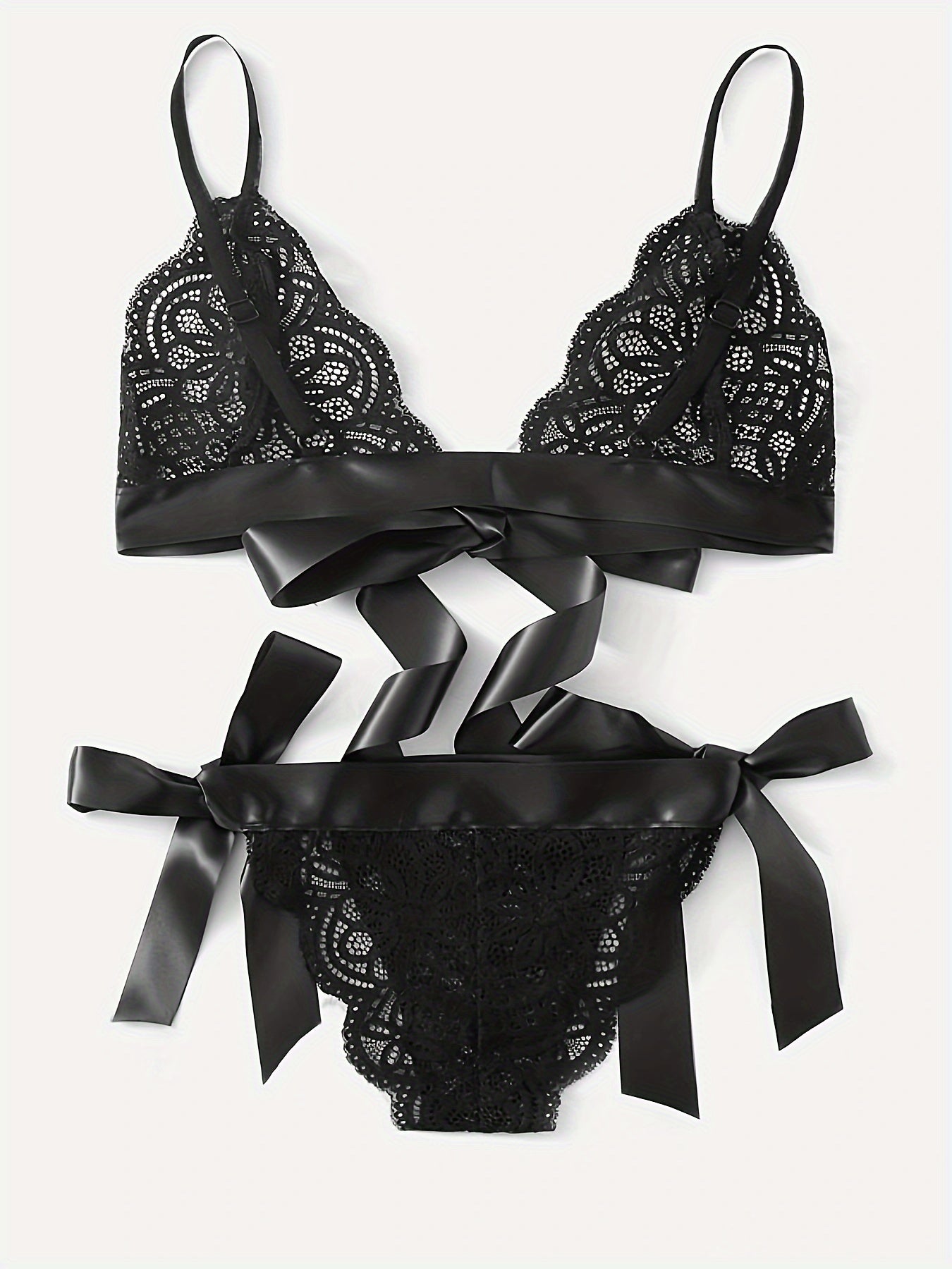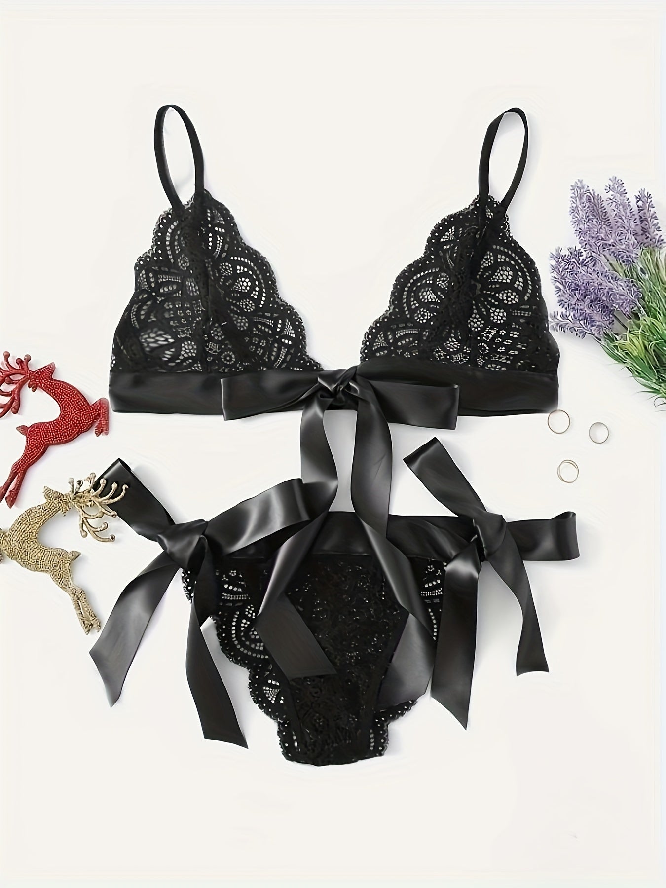 Ayollar uchun chuqur bra va thong bilan dantelli ichki kiyim to'plami.