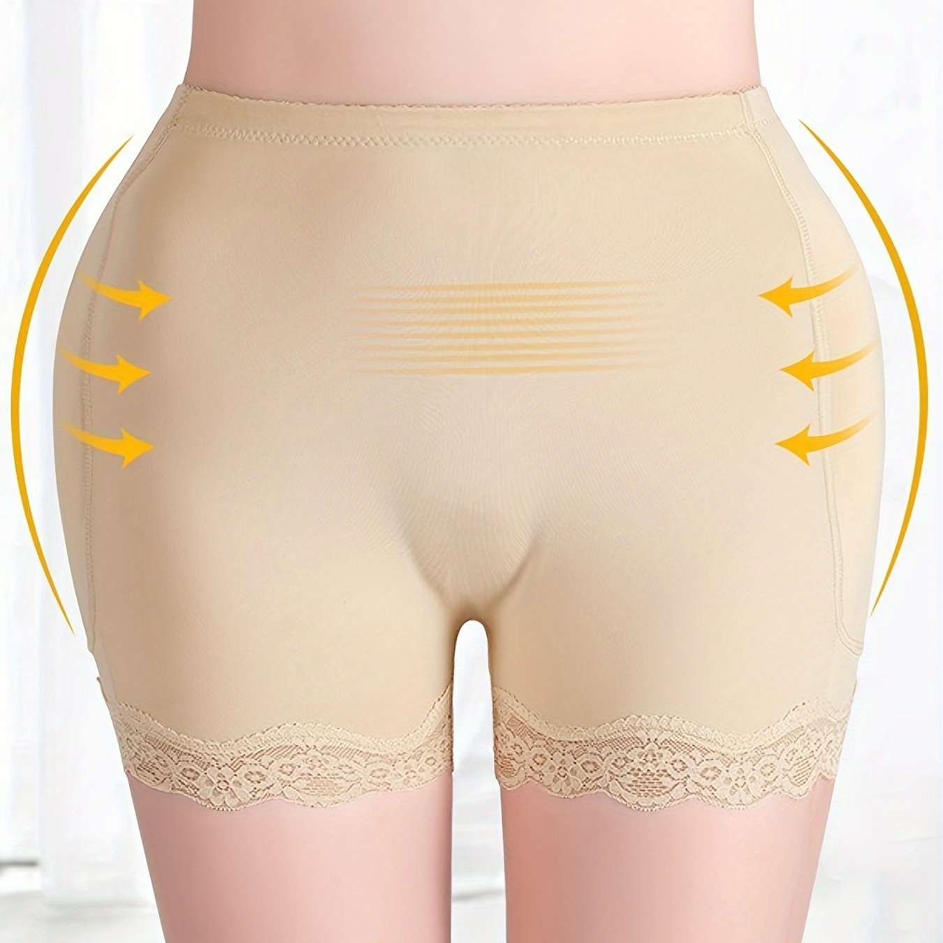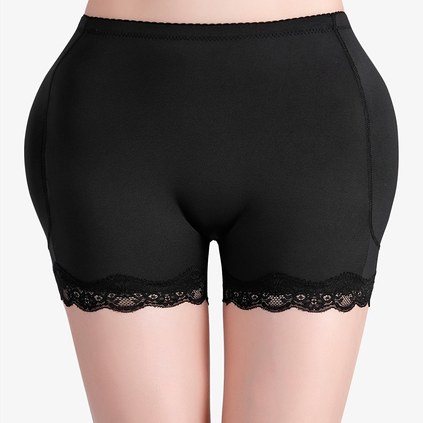 Bellyni nazorat qiluvchi va butlarni ko'tarish va shakllantirish uchun yostiqli ichki kiyim bilan yuqori belga ega, dantelli qirralangan shakllantiruvchi shortlar.