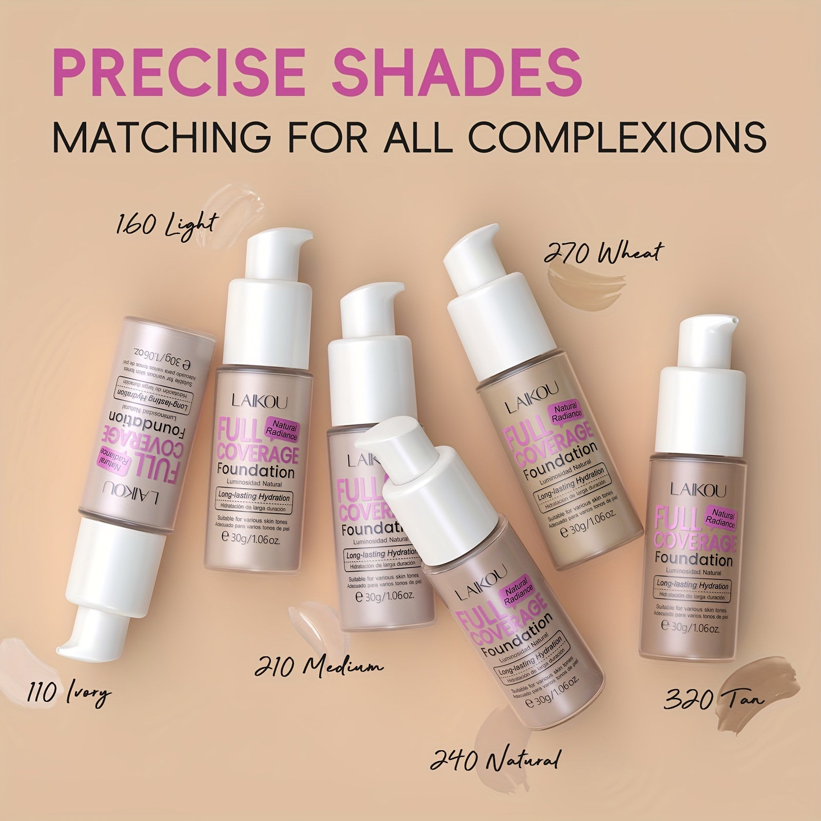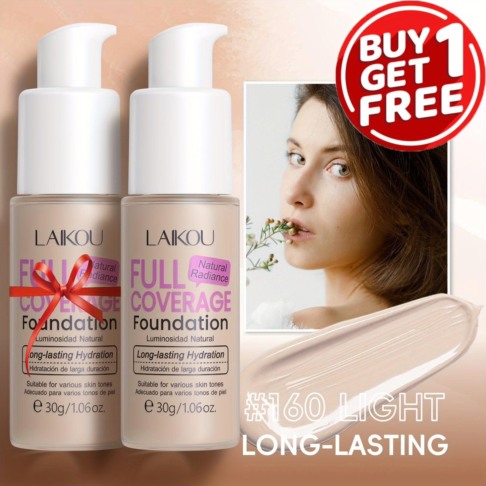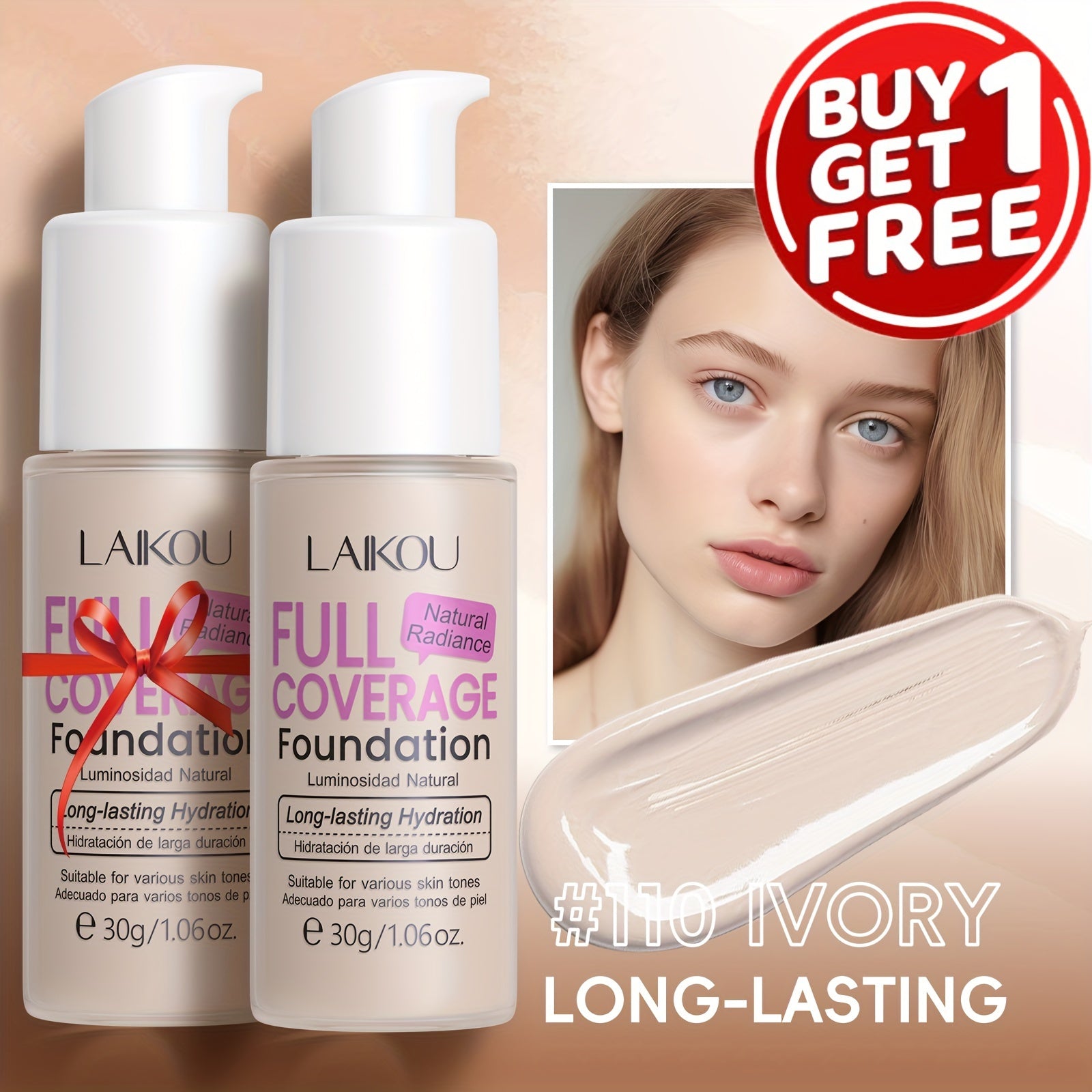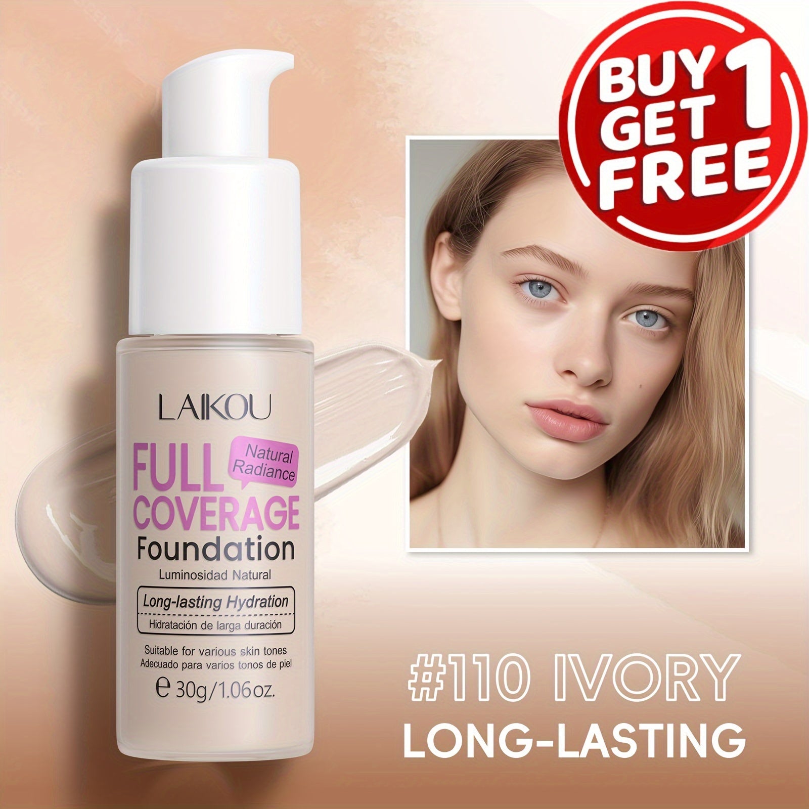 LAIKOU To'liq qoplovchi fondyushen: Namlantiruvchi, qurish mumkin bo'lgan yashirish 6 rangda. Gialuron kislotasi va nok kukuni bilan boyitilgan. Barcha teri turlariga mos keladi. Suv o'tkazmaydigan va po'latni kamaytiruvchi.