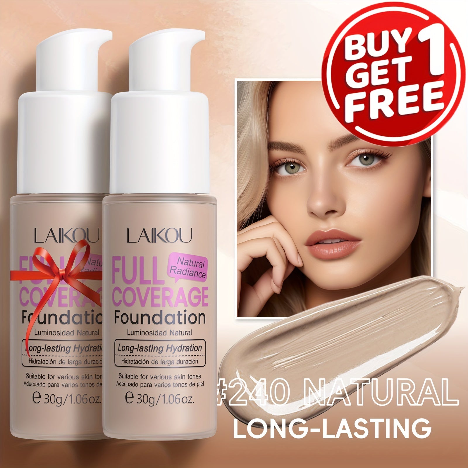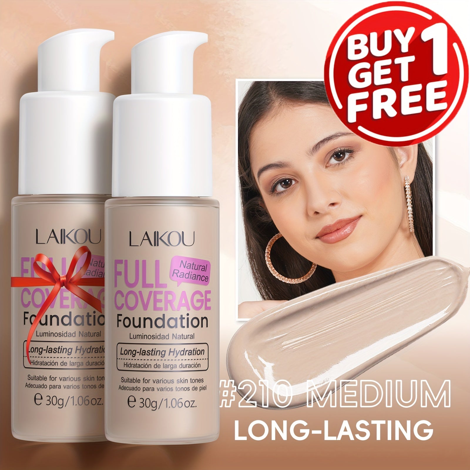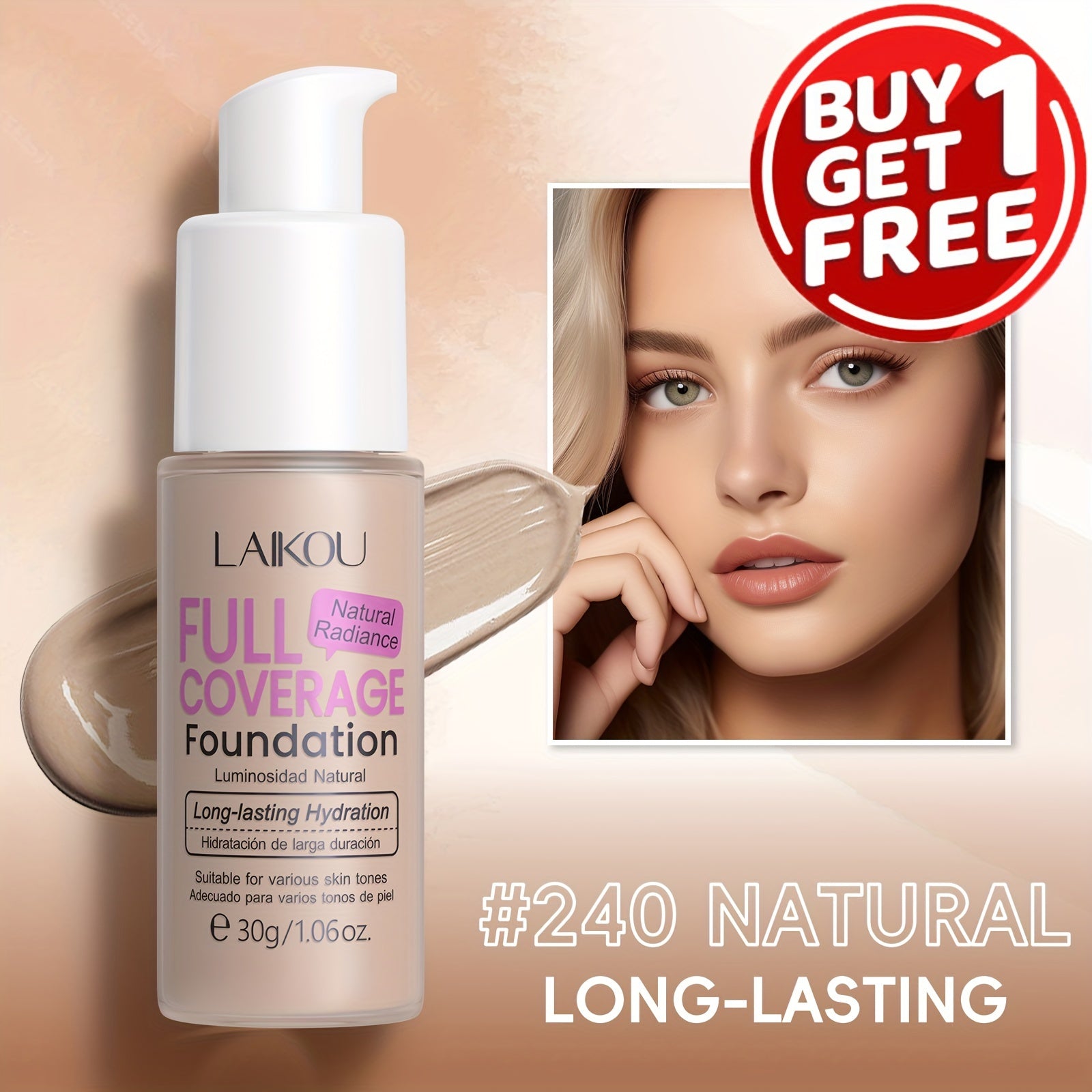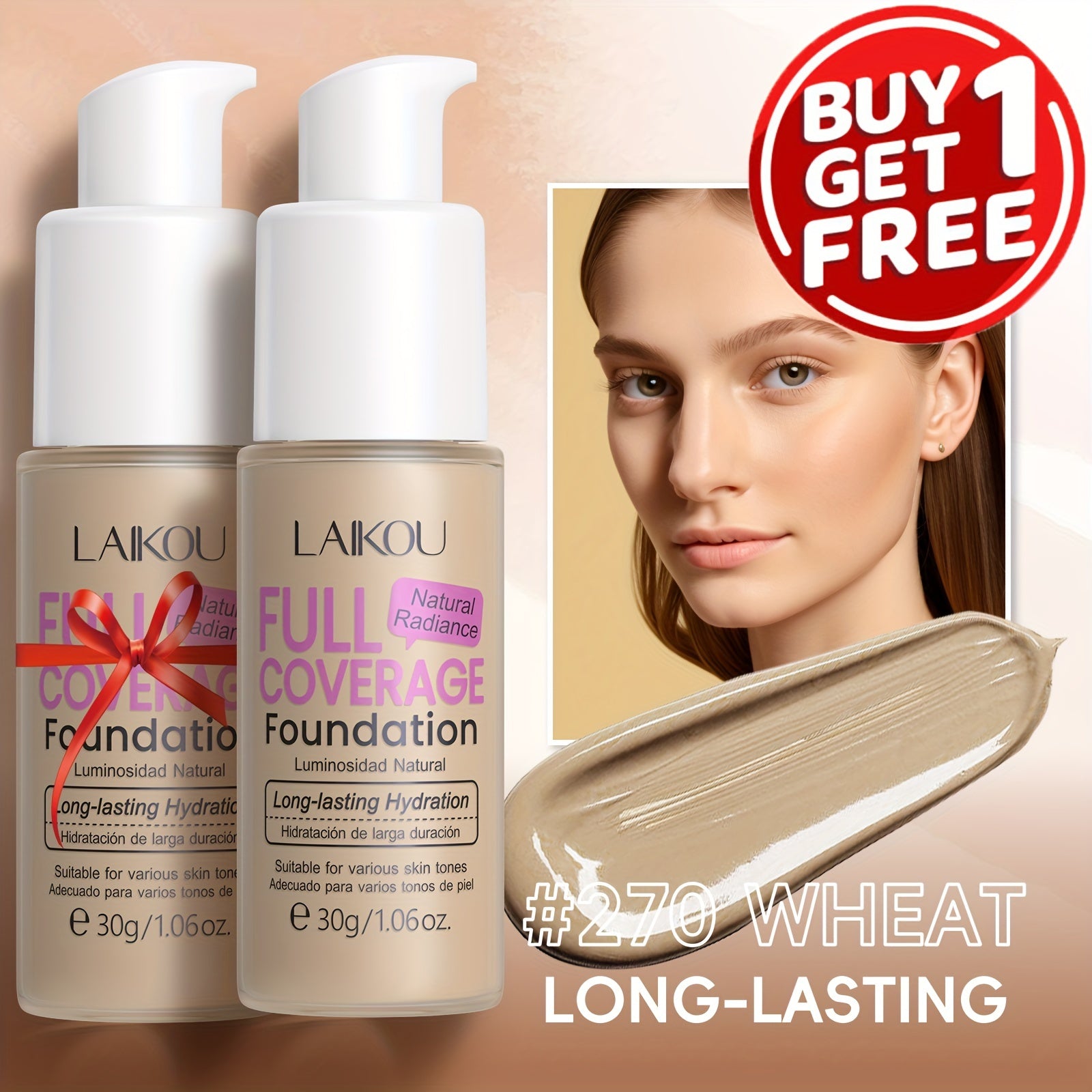 LAIKOU To'liq qoplovchi fondyushen: Namlantiruvchi, qurish mumkin bo'lgan yashirish 6 rangda. Gialuron kislotasi va nok kukuni bilan boyitilgan. Barcha teri turlariga mos keladi. Suv o'tkazmaydigan va po'latni kamaytiruvchi.