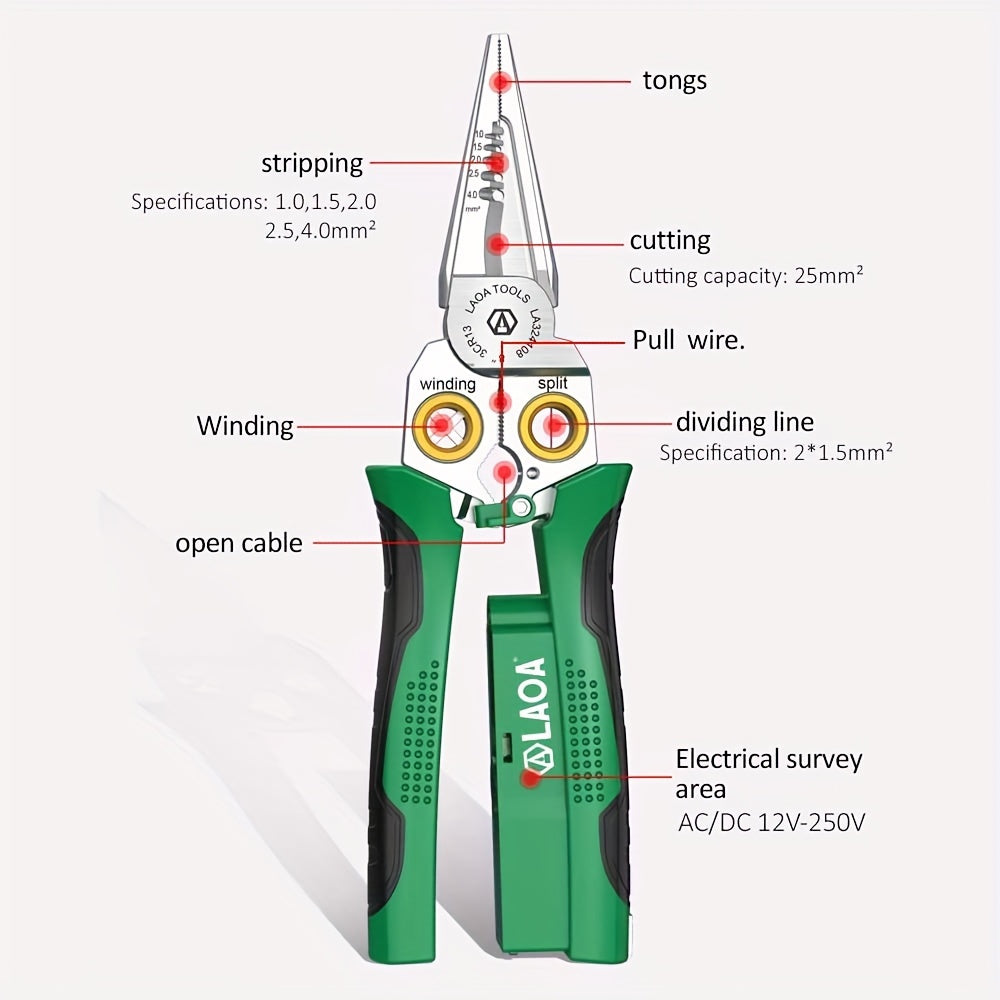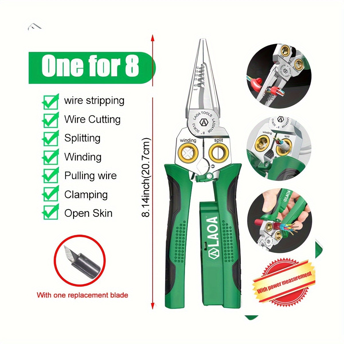 8-in-1 sim kesgichlar bilan simlarni kesish va bosish uchun kuchlanish testi va kabel kesgichlari