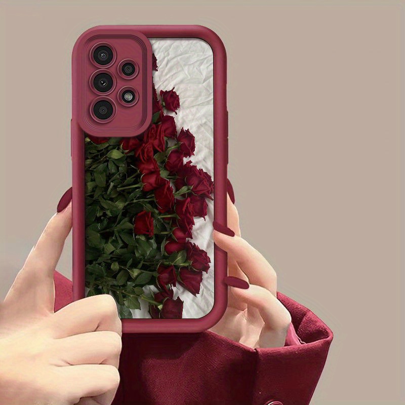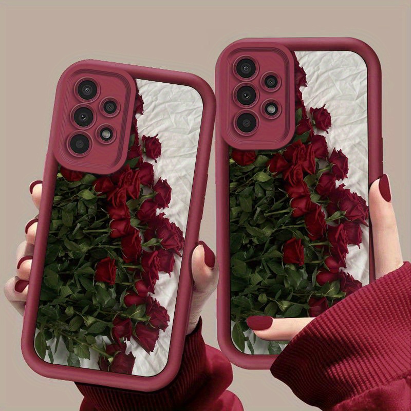 Turli Samsung modellari uchun katta qizil atirgul naqshli telefon qopqog'i.