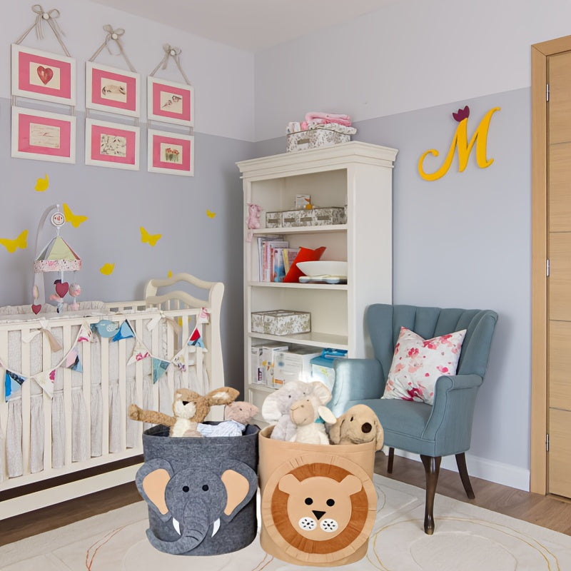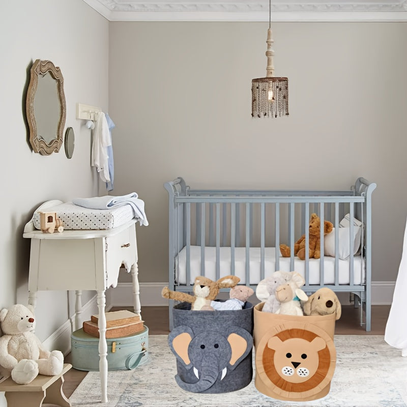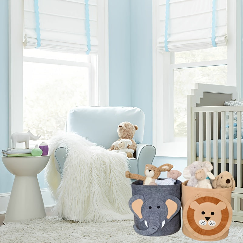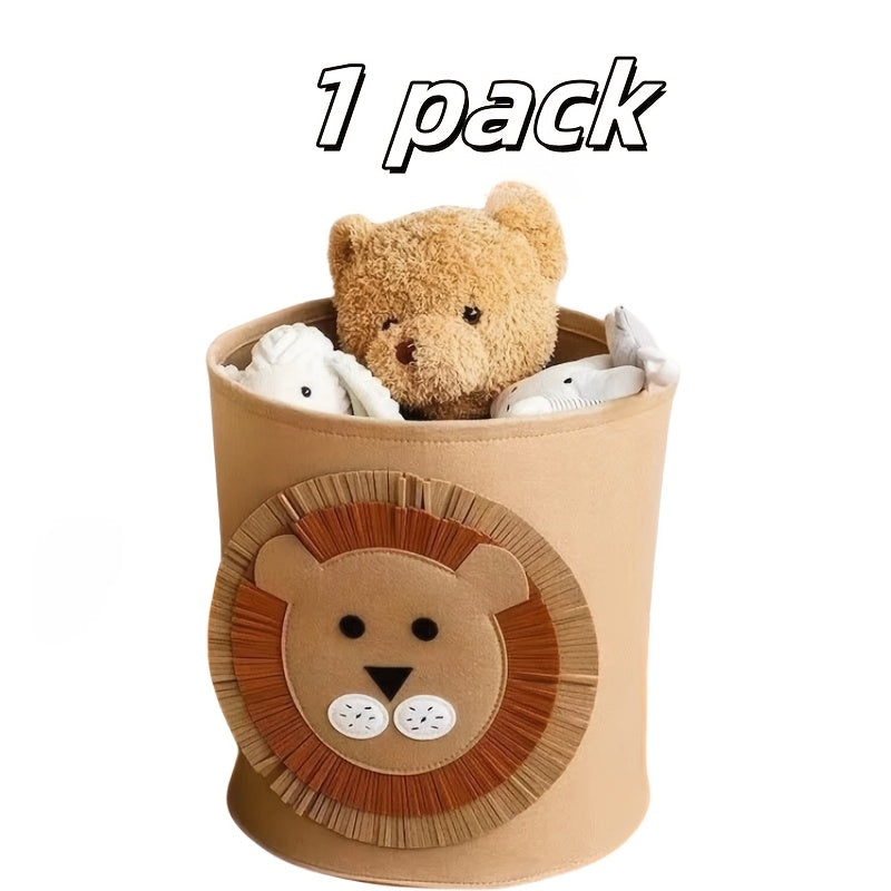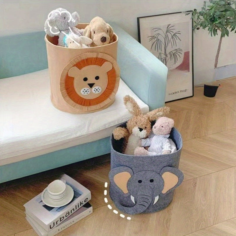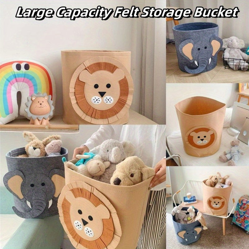 Katta hajmdagi filtrlash uchun mo'ljallangan katta sig'imli felt saqlash savati, multfilm hayvonlari dizayni bilan, o'yinchoqlar, kiyimlar va poyabzal uchun