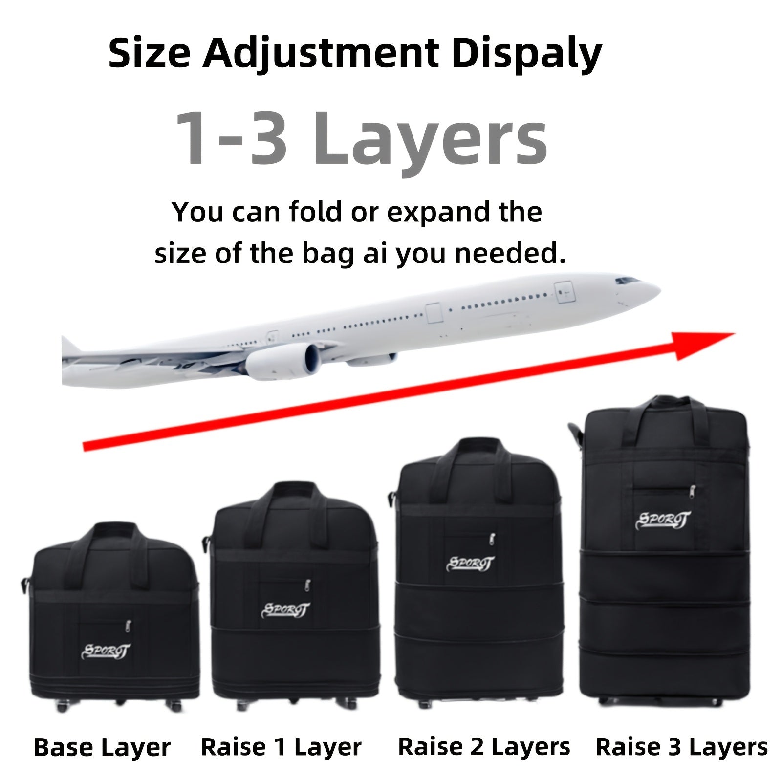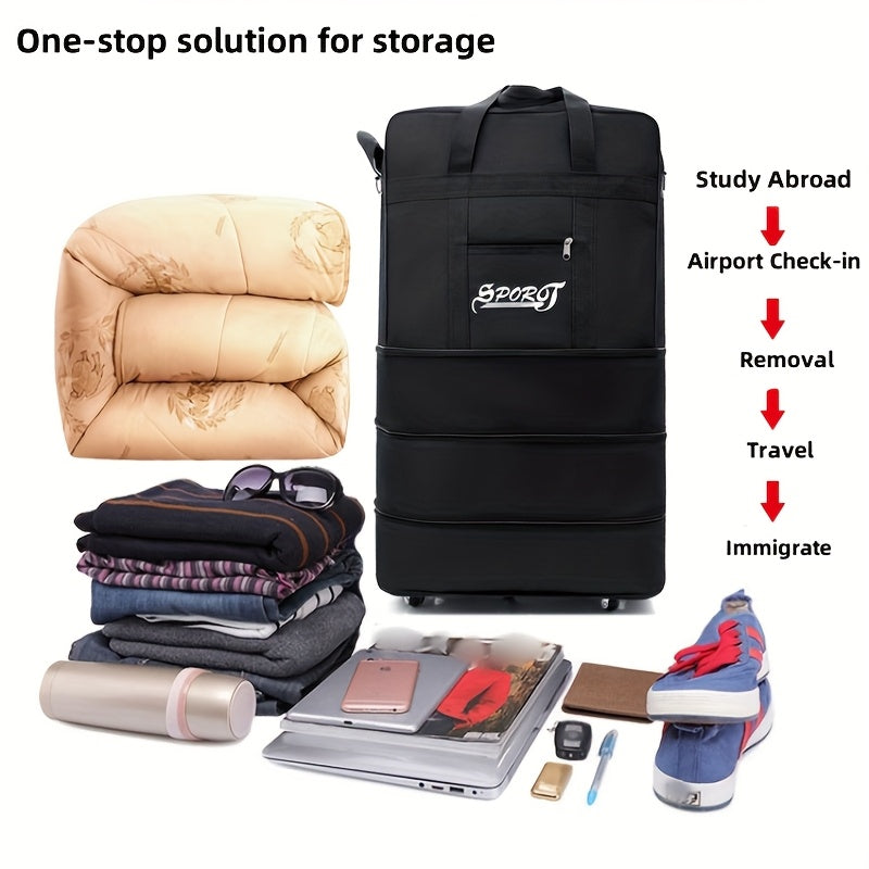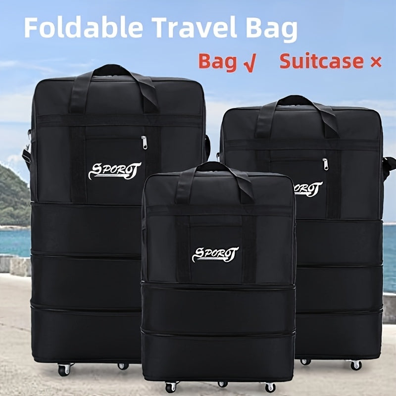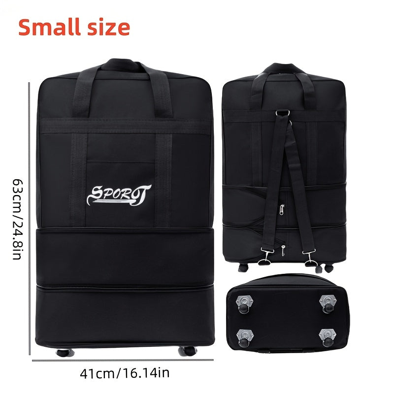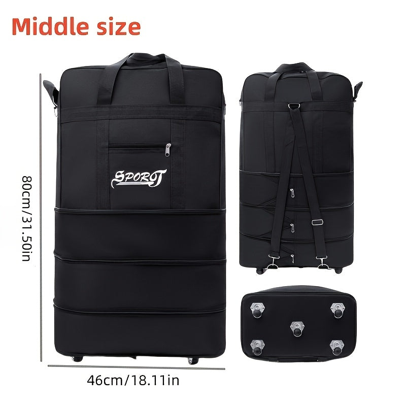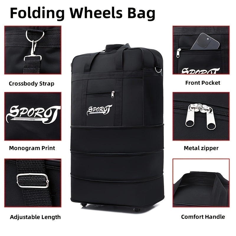 Katta hajmli yig‘iladigan sayohat sumkasi, suv o'tkazmaydigan Oxford sport sumkasi, aylanadigan g‘ildiraklar bilan