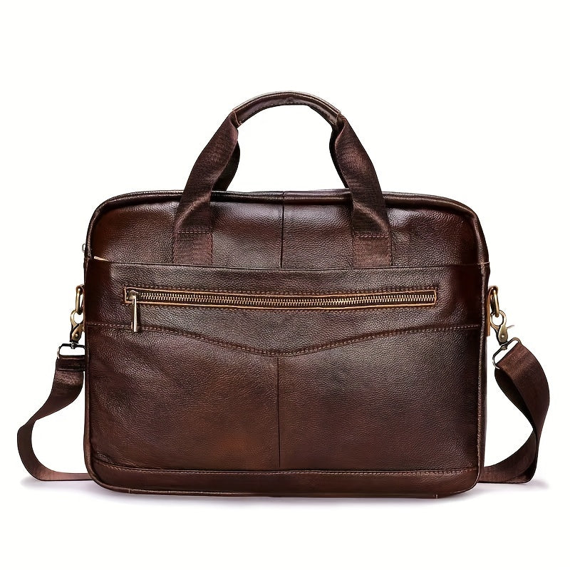 Ish va sayohat uchun haqiqiy jigarrang yuqori donali mol go'shti terisidan tayyorlangan katta sig'imli noutbuk xabarchi sumkasi.