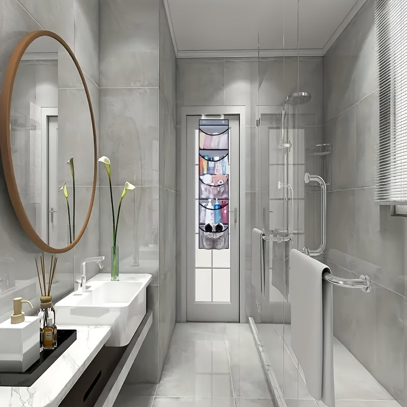 Katta hajmli kulrang osma saqlash sumkasi, 5 ta cho'ntak bilan shkaf va hammomni tartibga solish uchun