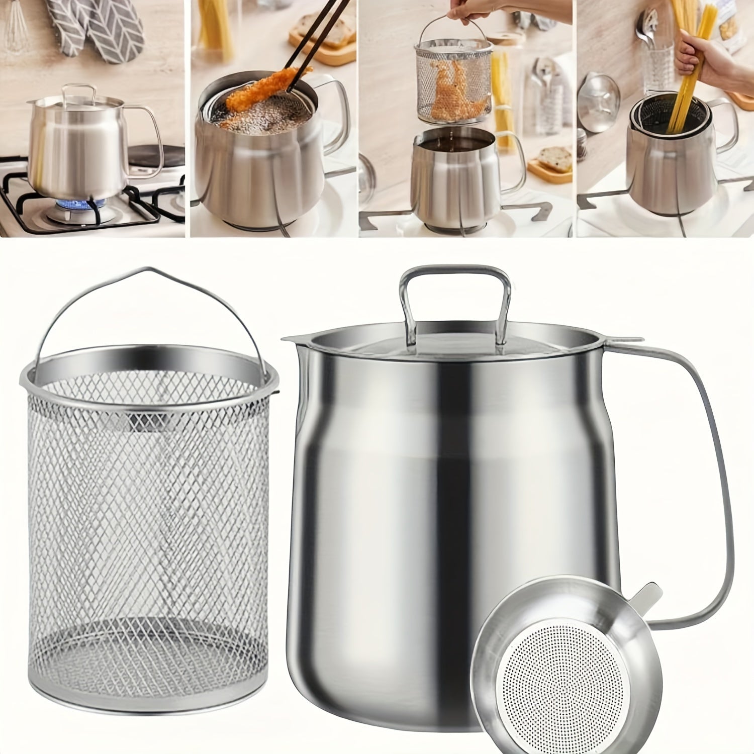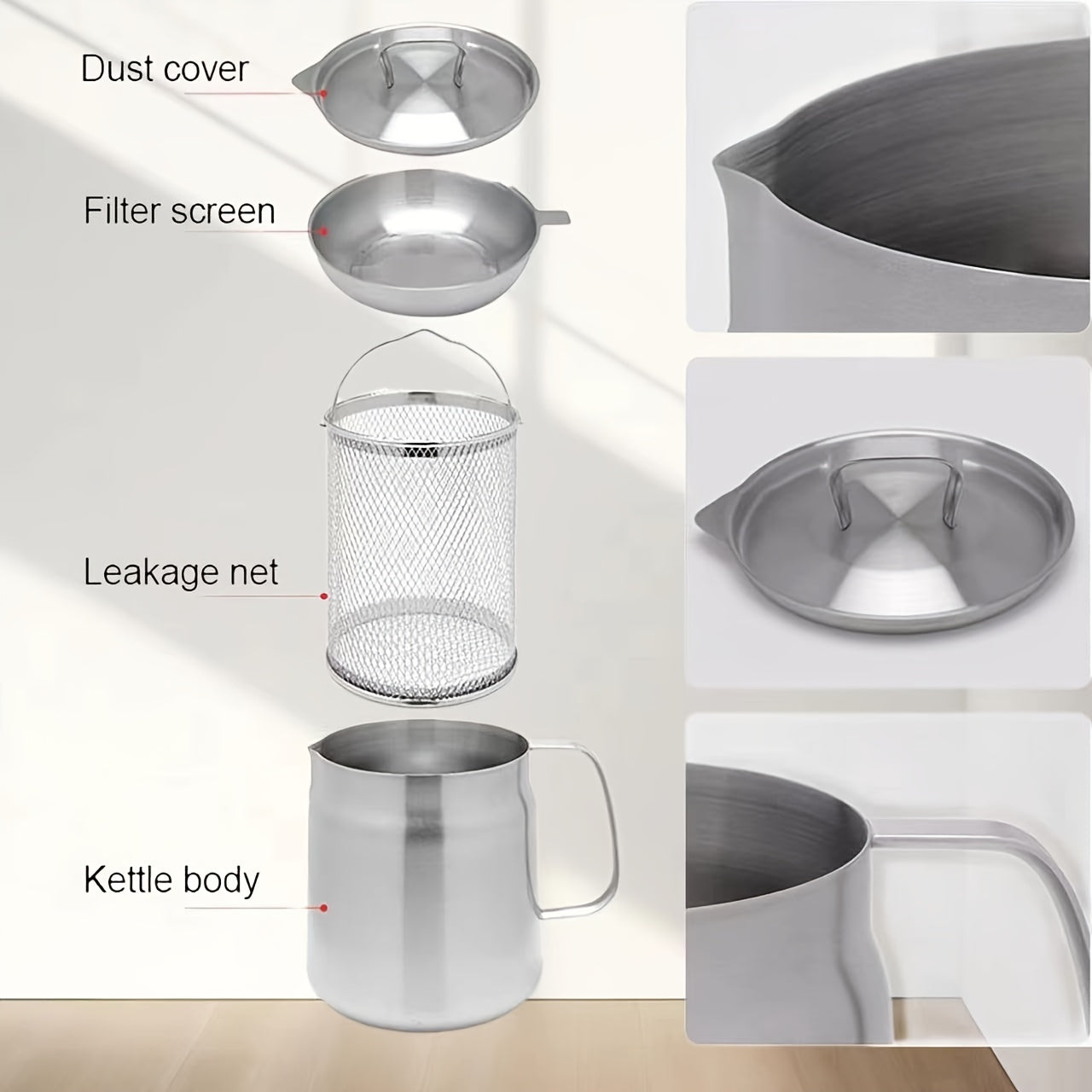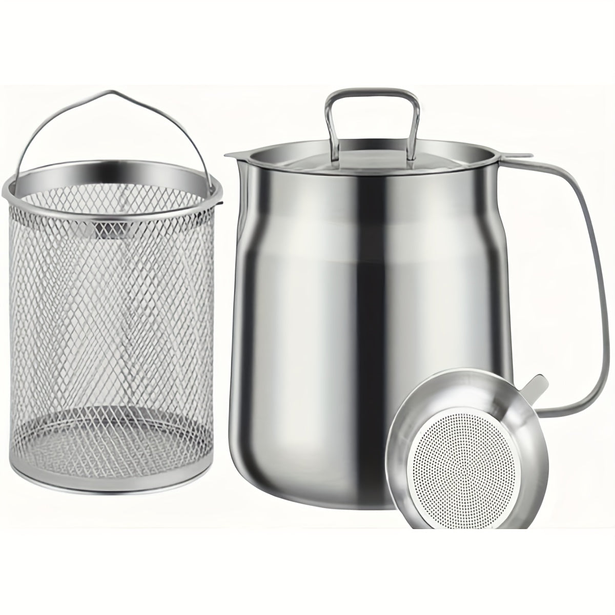Katta Hajmli Yog' Filtrli Qozon To'plami, Chang Qopqog'i va Nozik Tarmoq Filtri bilan - 3 Dona 304 Noxud Po'latdan - Oshxona Yog' Saqlagichi, Yog' Filtrlash, Saqlash va Qayta Foydalanish uchun Oqim Tarmog'i - Elektr energiyasi talab qilinmaydi