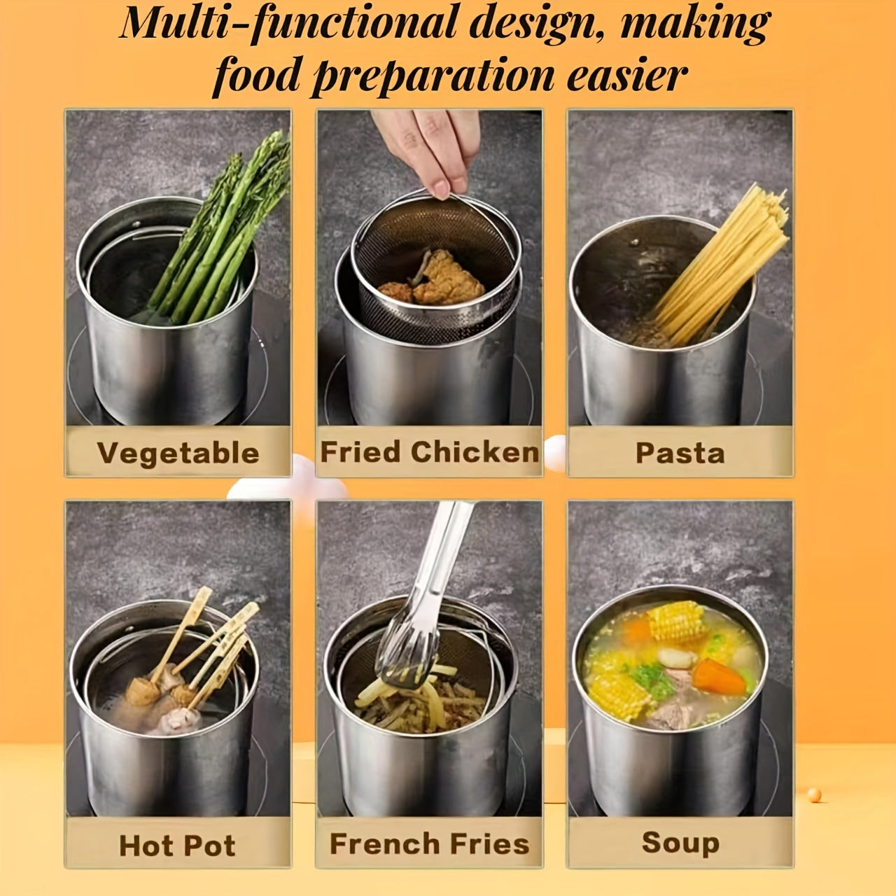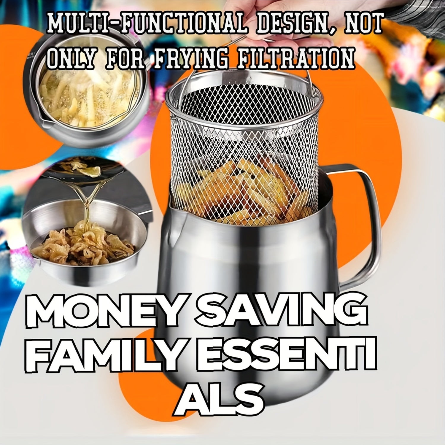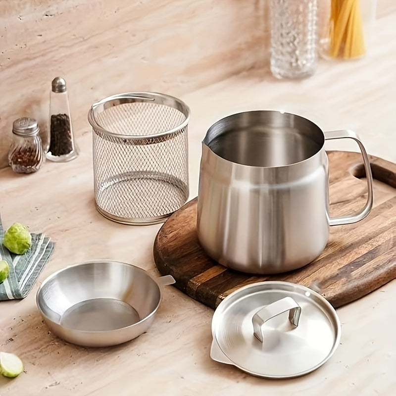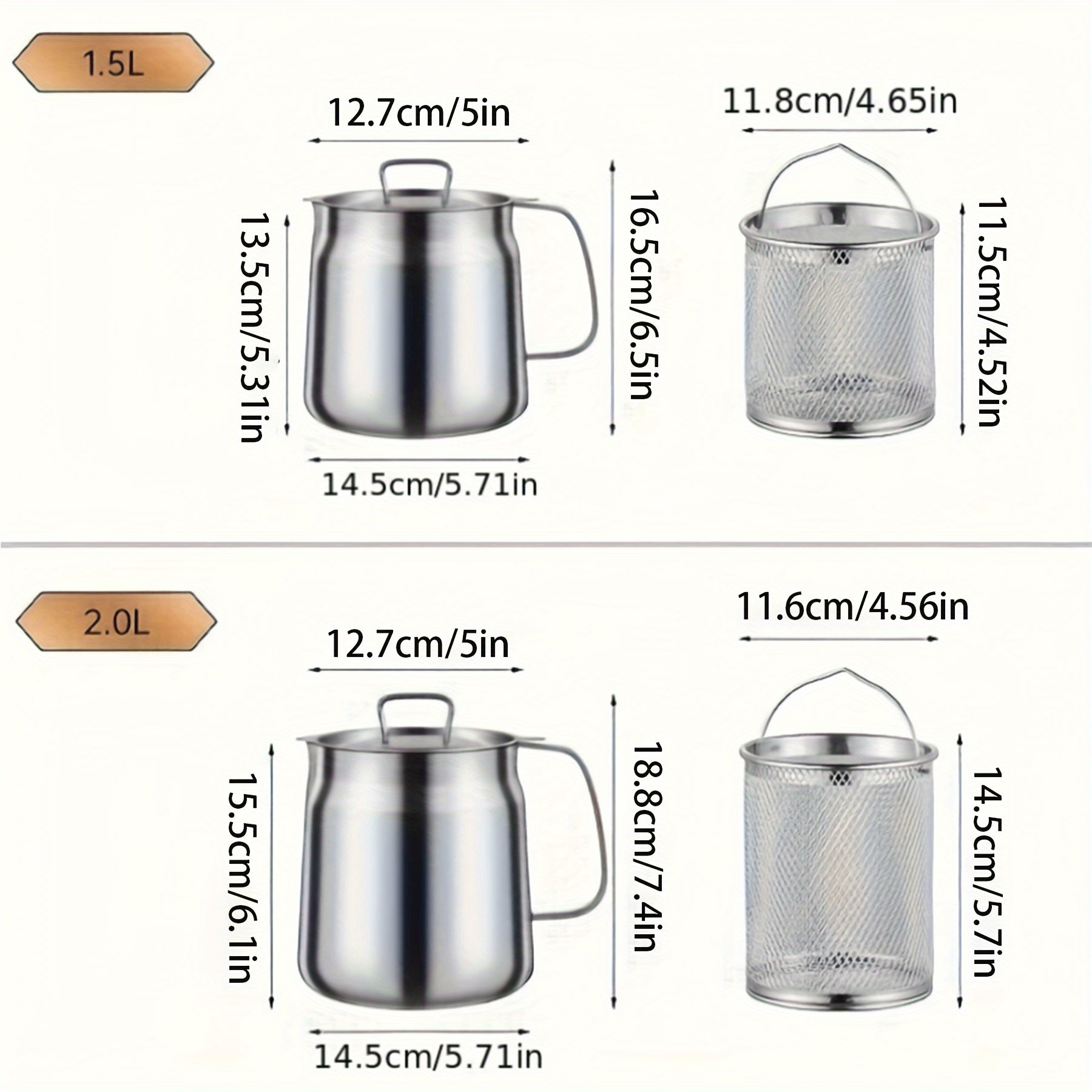 Katta Hajmli Yog' Filtrli Qozon To'plami, Chang Qopqog'i va Nozik Tarmoq Filtri bilan - 3 Dona 304 Noxud Po'latdan - Oshxona Yog' Saqlagichi, Yog' Filtrlash, Saqlash va Qayta Foydalanish uchun Oqim Tarmog'i - Elektr energiyasi talab qilinmaydi