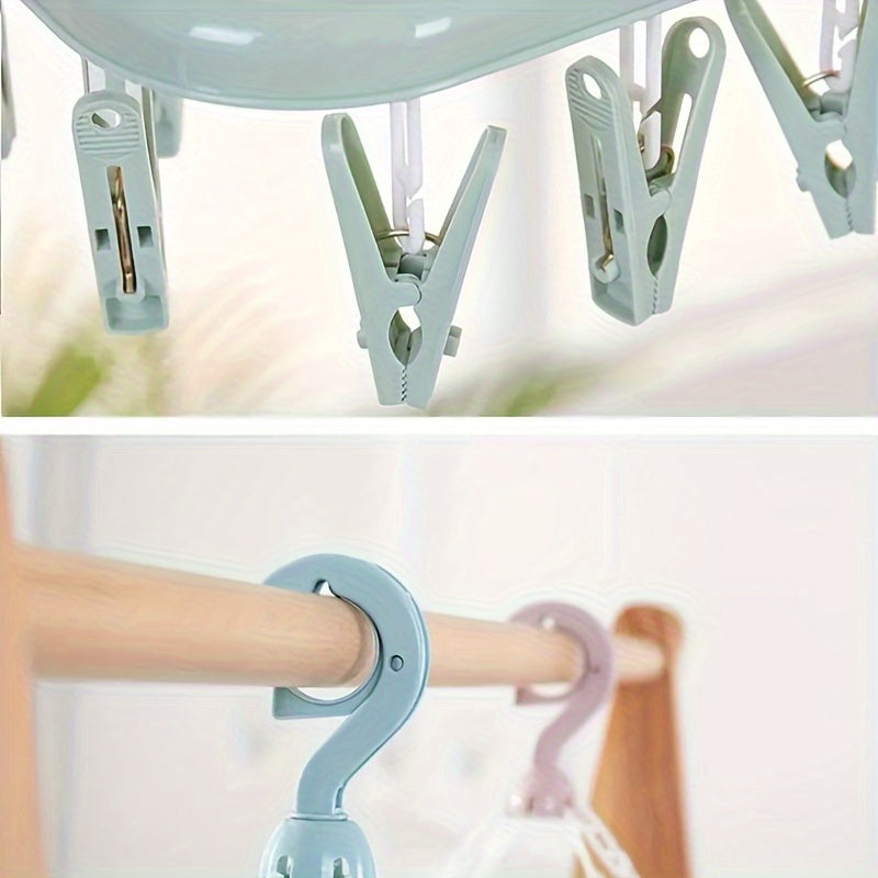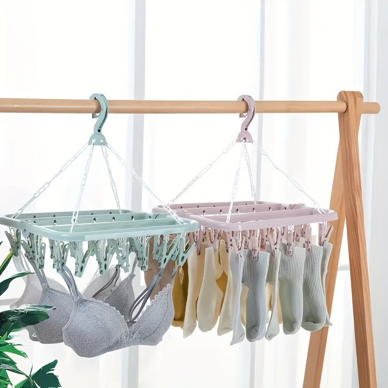Katta hajmli plastmassa paypoq tutqichlari, 32 ta klip bilan, kiyimlarni quritish uchun, pushti, ko‘k, yashil