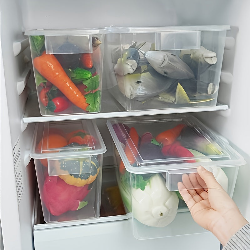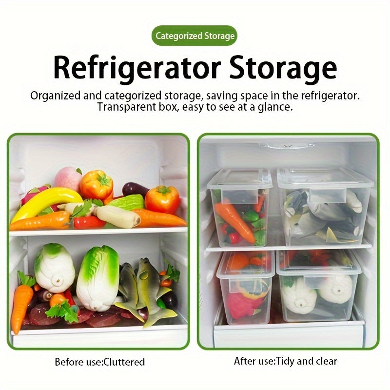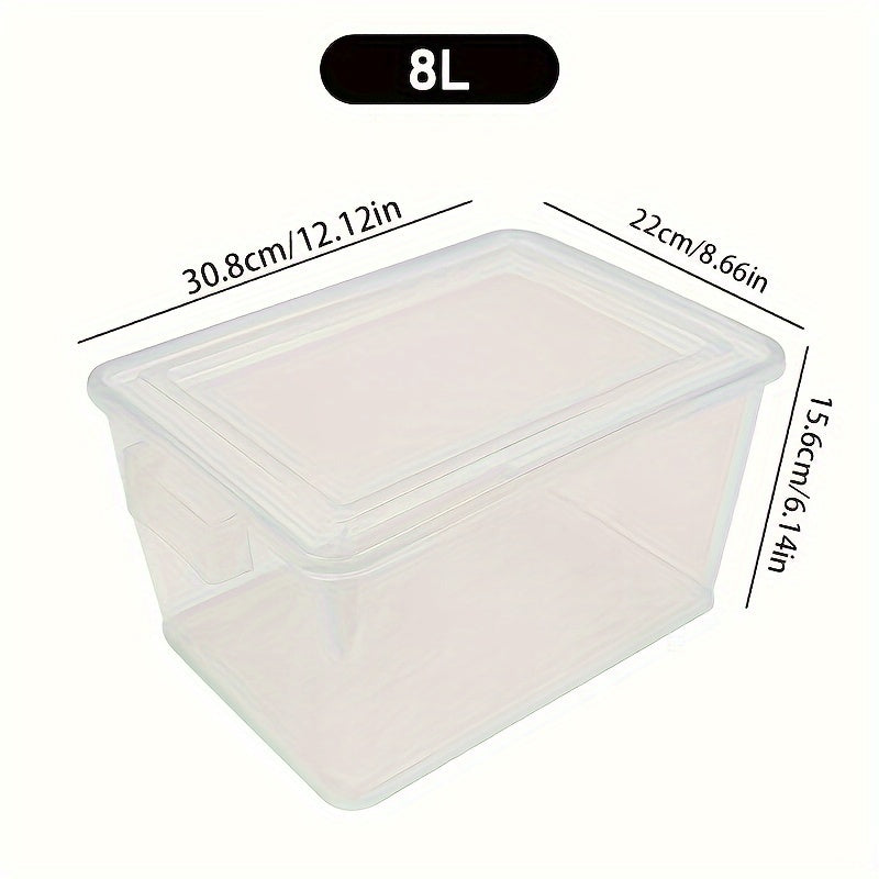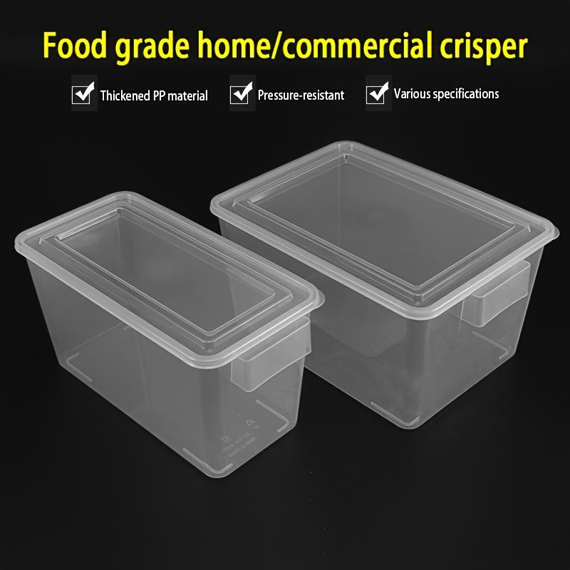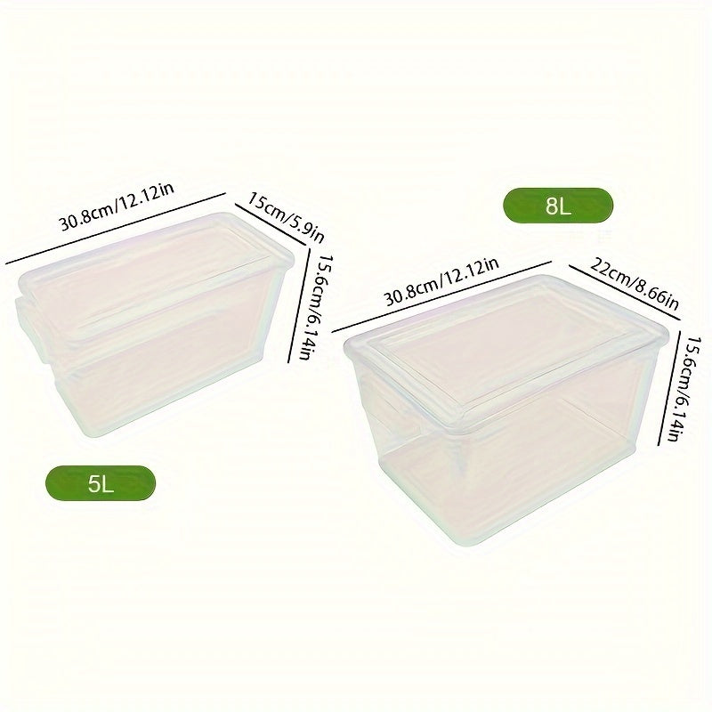 Yirik hajmli shaffof saqlash qutisi, oqib ketmaslik uchun yopiq bilan, tuxum, go‘sht, meva, sabzavot va boshqa oshxona ehtiyojlari uchun ideal. Oshxona tashkilotchisi yoki turli oshxona aksessuarlarini saqlash uchun konteyner sifatida foydalanish mumkin.