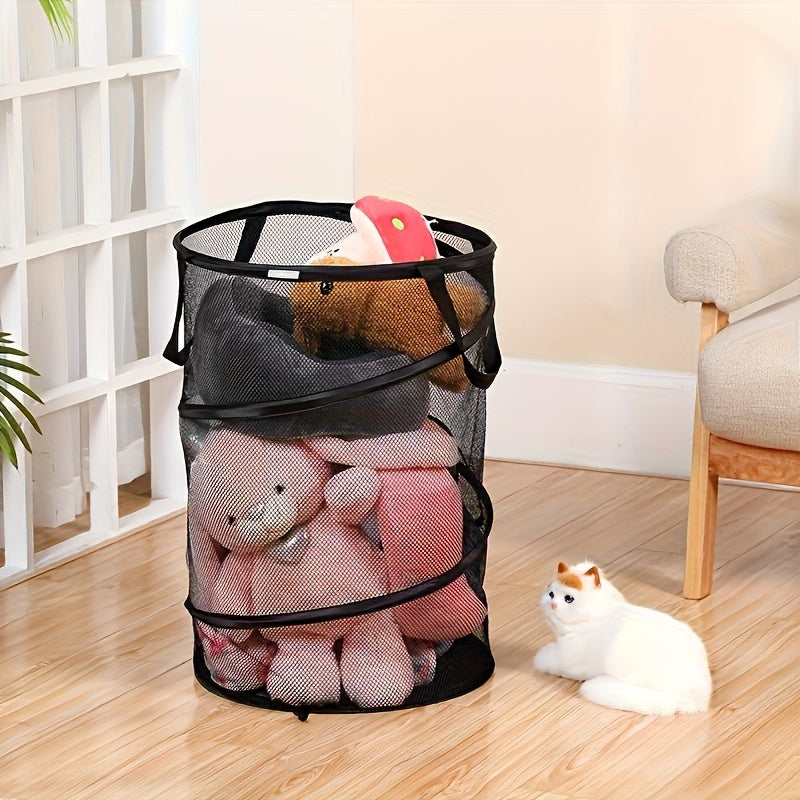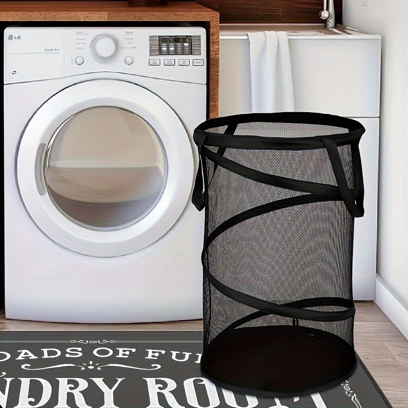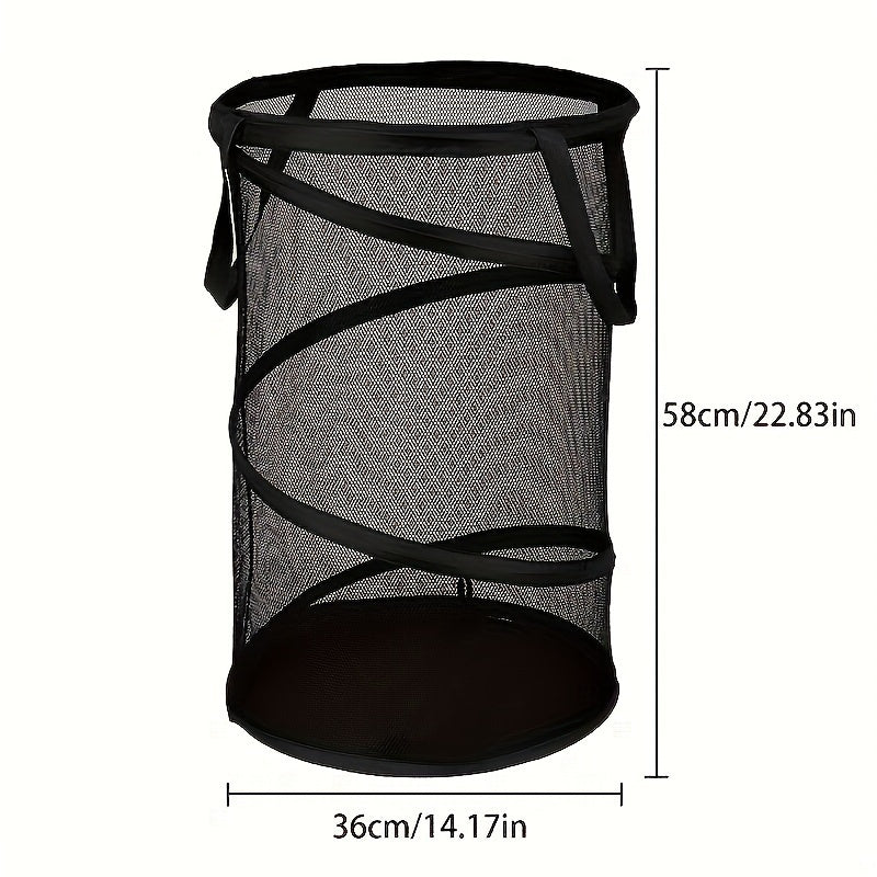 Katta yig'iladigan kir yuvish hamperi, mustahkam, nafas oladigan to'rdan tayyorlangan - uyda yoki sayohatda iflos kiyimlarni saqlash uchun ideal. Tashkiliy uchun qulay foydali tutqichlar. Oson tashish uchun yengil va portativ.
