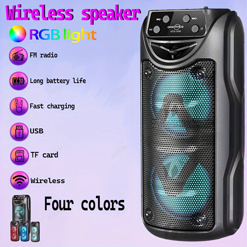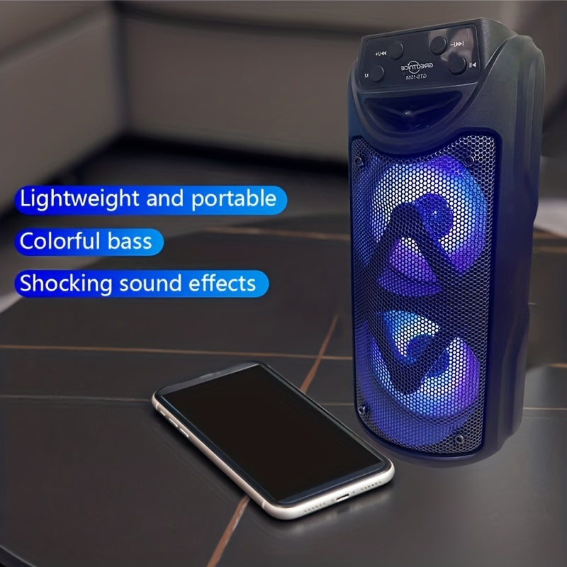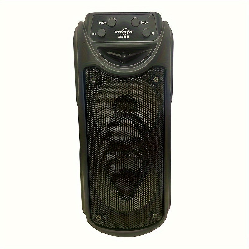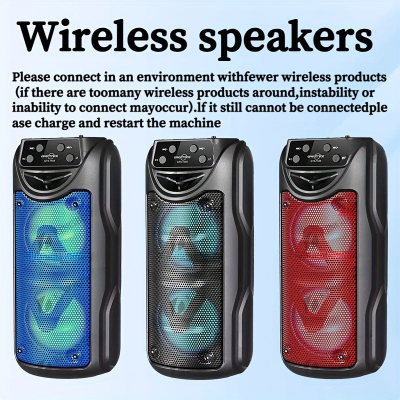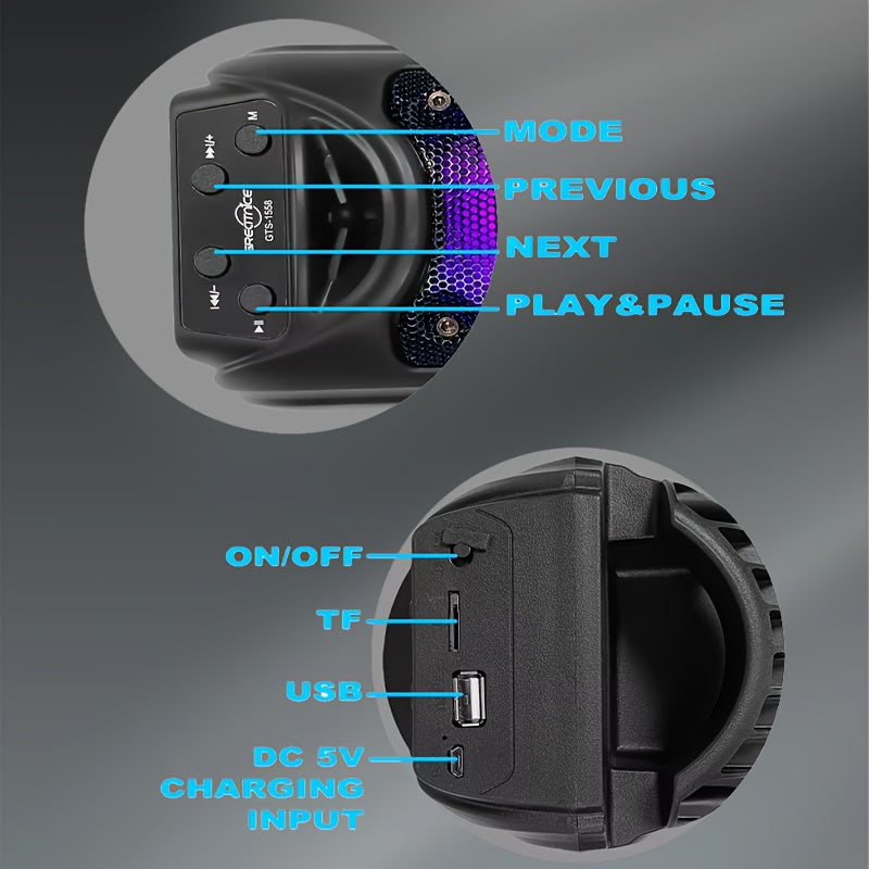 Katta ikki 3 dyuymli ochiq havoda foydalanish uchun mo'ljallangan dinamik, LED chiroq, ulanish uchun kartochka, USB va mikrofon ulanishi bilan. Kamping va portativ foydalanish uchun mukammal, simsiz imkoniyatlar va rang-barang yoritish bilan.