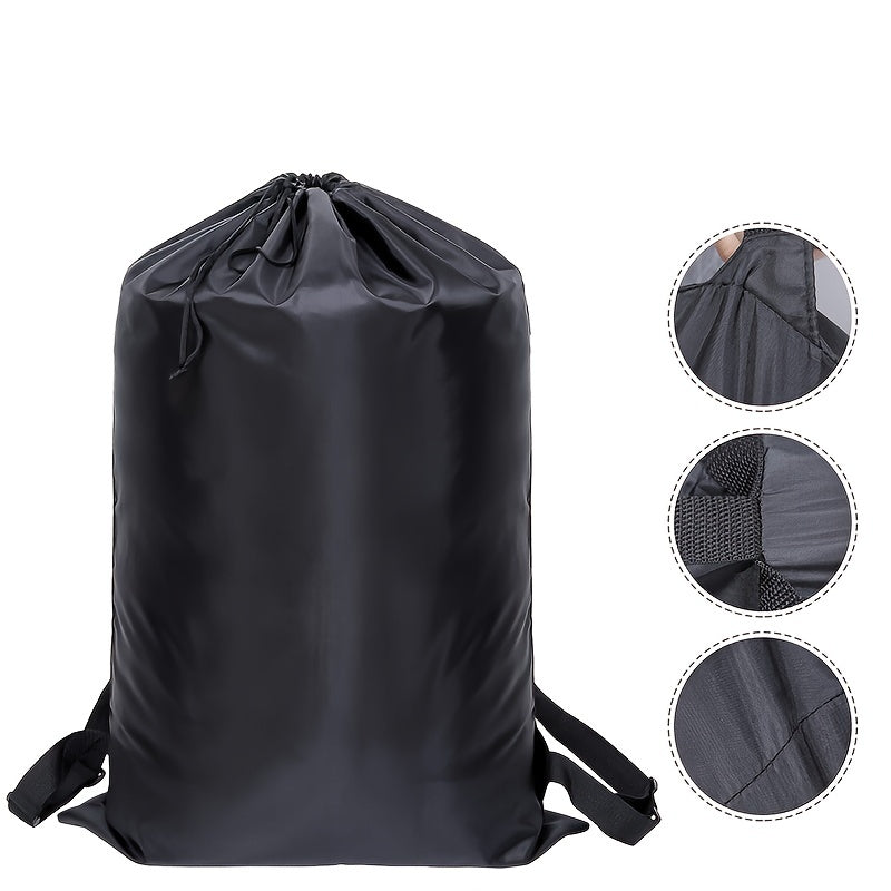 Katta yuvish ruksak, tortish ipi bilan, iflos kiyimlarni saqlash uchun mo'ljallangan. Oson ko'chirish uchun yelka tasmalari bilan birga keladi. Yotoqxona va uylar uchun ideal, bu mustahkam yuvish sumkasi sayohat paytida joyni tejaydi.