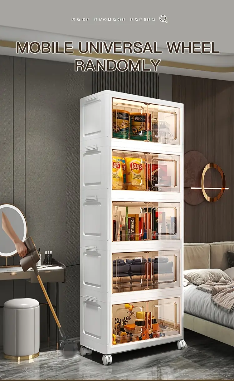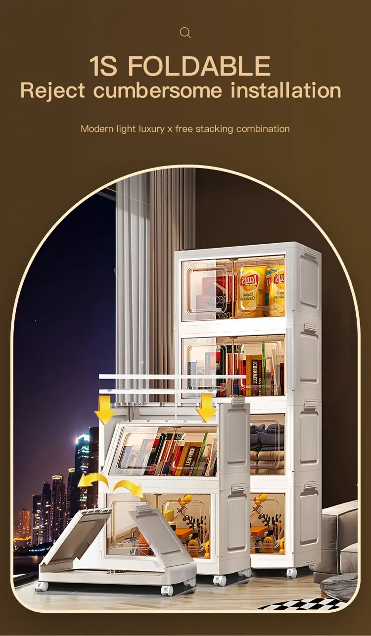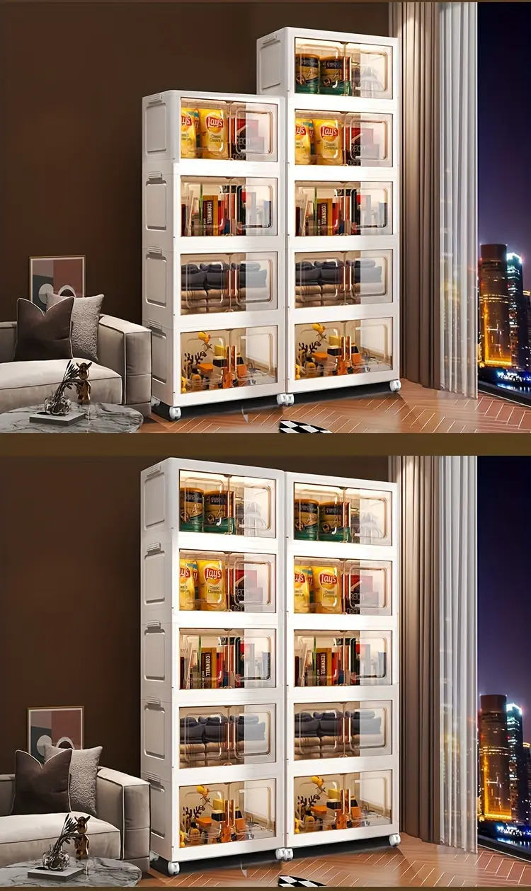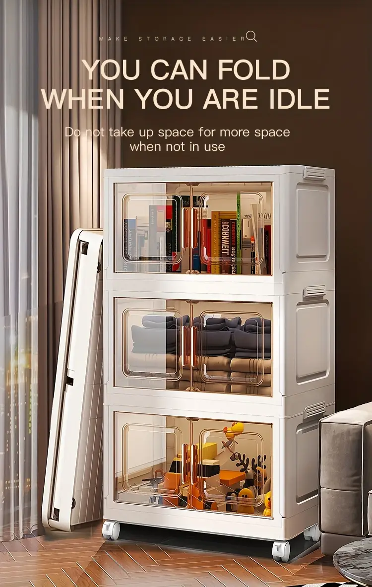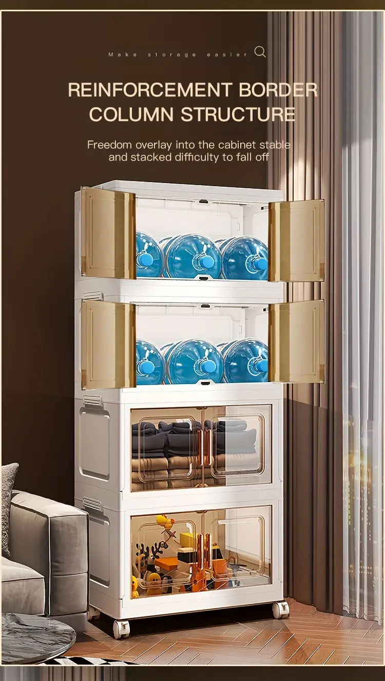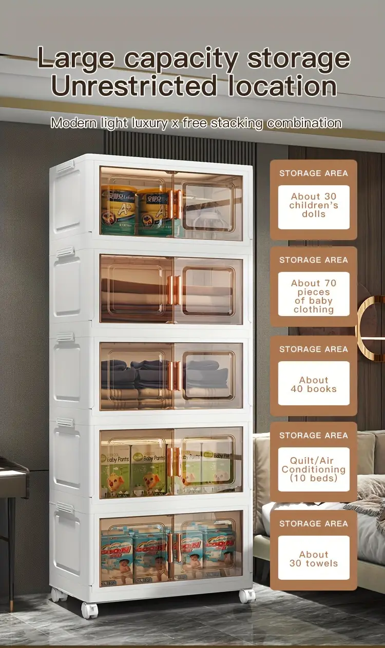 Katta, to'plamga joylashadigan g'ildirakli saqlash qutisi, egiluvchan, suv o'tkazmaydigan, oq plastik. Yig'ish kerak emas.