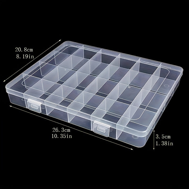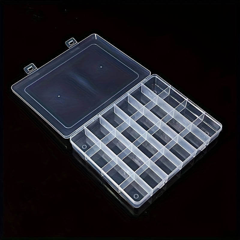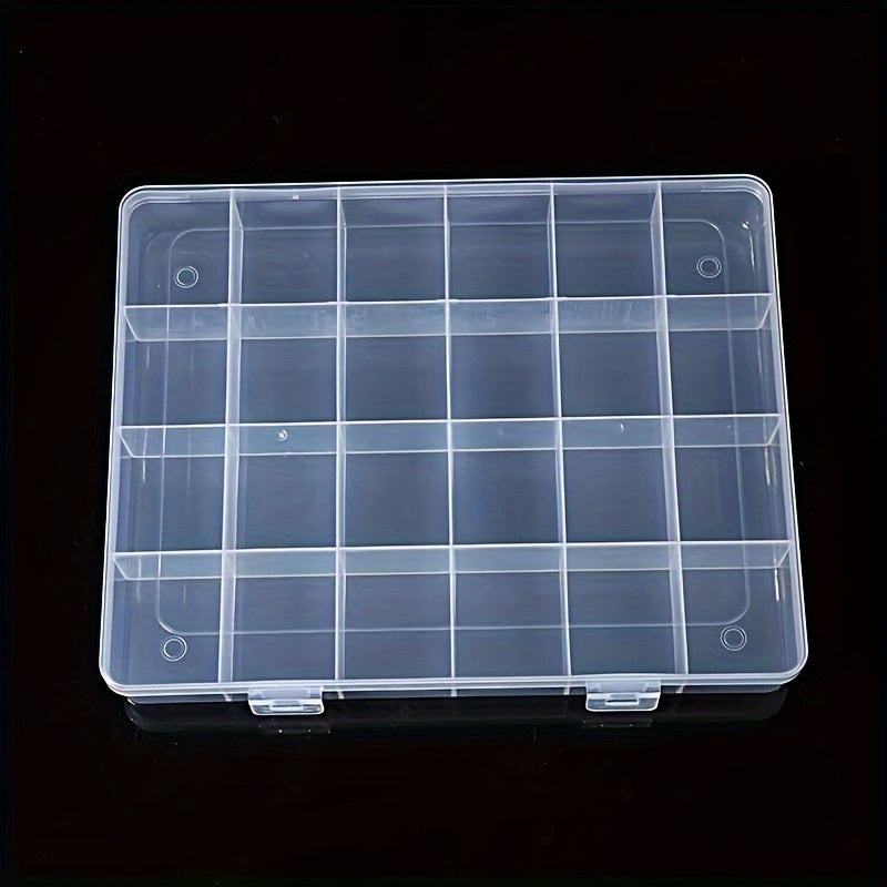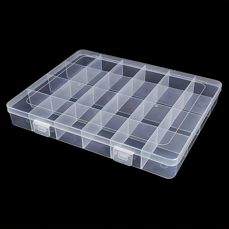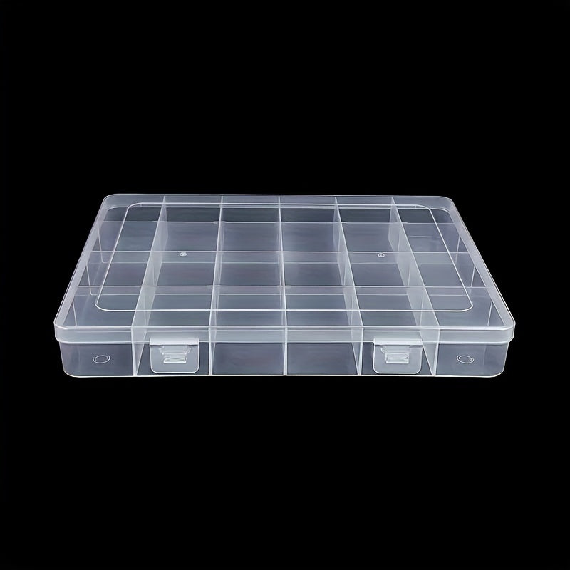 Katta shaffof plastmassa saqlash qutisi, 24 ta doimiy panjara bilan zargarlik buyumlarini tashkil etuvchi