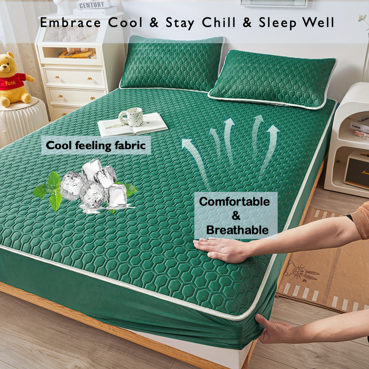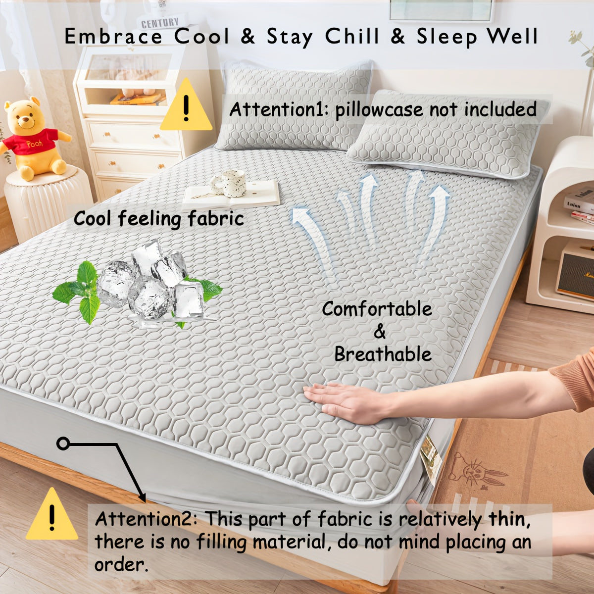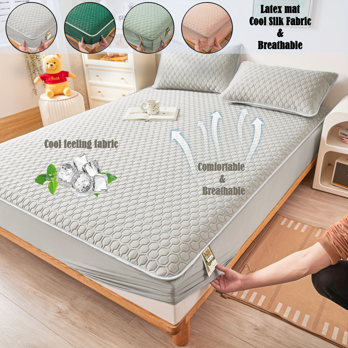 Muz his-tuyg'usi dizayni bilan Lateks Cool Matras Qoplamasi, Bir xil rang, Mashinada yuvish mumkin, Qalin tikilgan ip. Yotoqxonalarga, Talabalar yotoqxonalari, Mehmonxonalar uchun mos. Yostiq qoplamalari kiritilmagan.