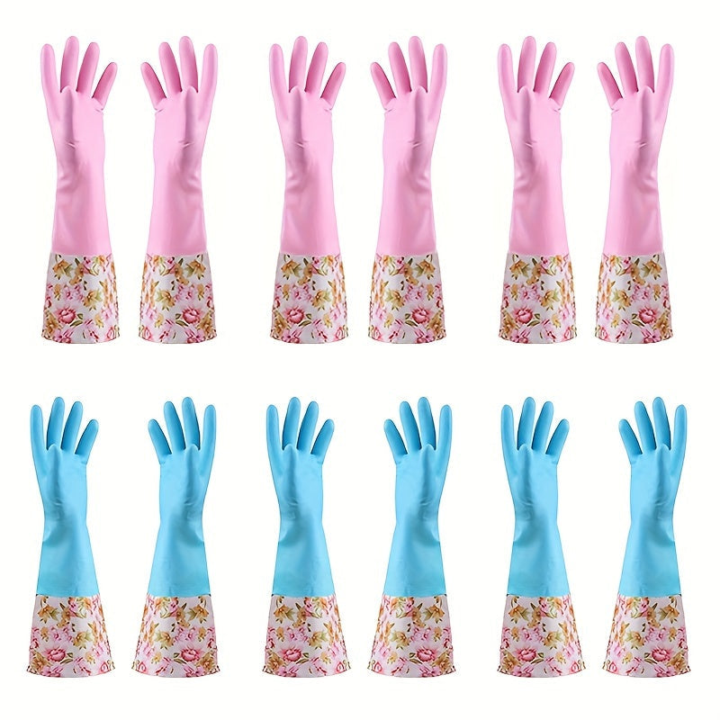 Lateksdan Ozod Uy Qo'lqoplari 6 Ta To'plam, Yumshoq Ichki Qismi va Eng Yuqori Himoya Uchun Uzoq Qirralar - Tashqi, Hammom, Oshxona Foydasi Uchun Mukammal Suv O'tkazmaydigan PVC Qo'lqoplar - O'rta O'lcham, Ko'k va Qizil Rangda