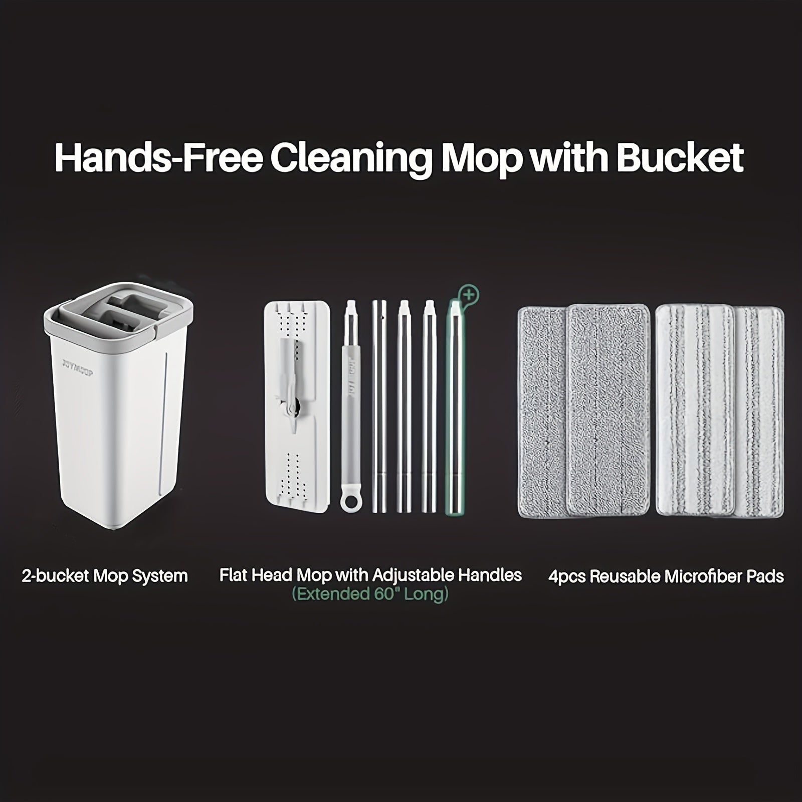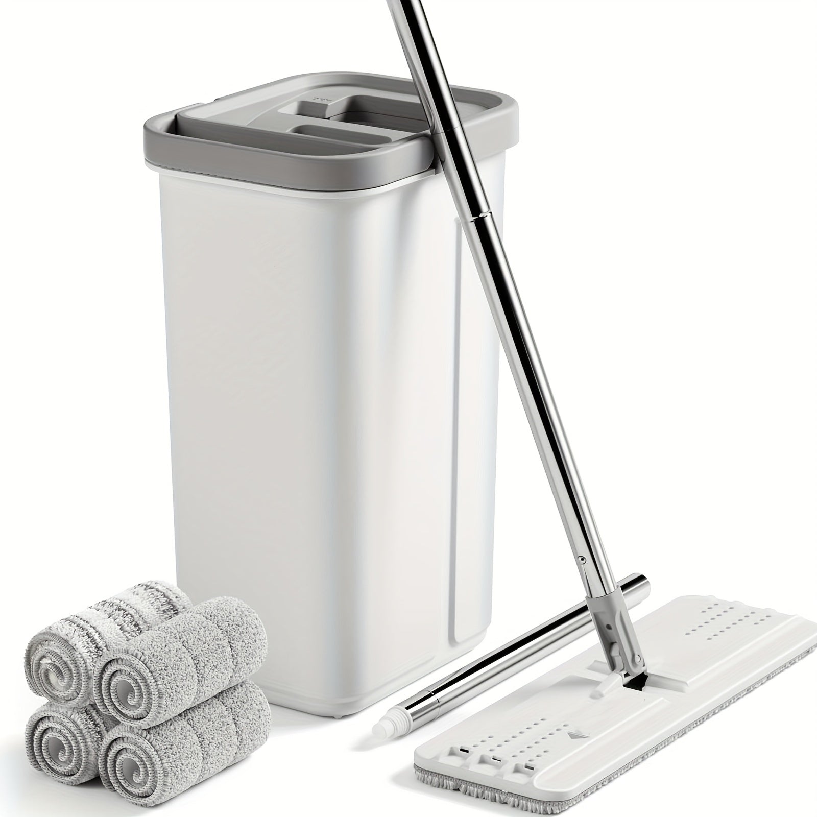 "Leni Mop va Chelak To'plami - 1 Dona, Suv Siqish, Qayta ishlatiladigan Mikrofiber Padlar bilan 60-Diagonal Mop va 4 Dona Mikrofiber Padlar bilan birga keladi. Qo'l bilan ishlatilmaydigan Pol Tozalash To'plami kiritilgan."