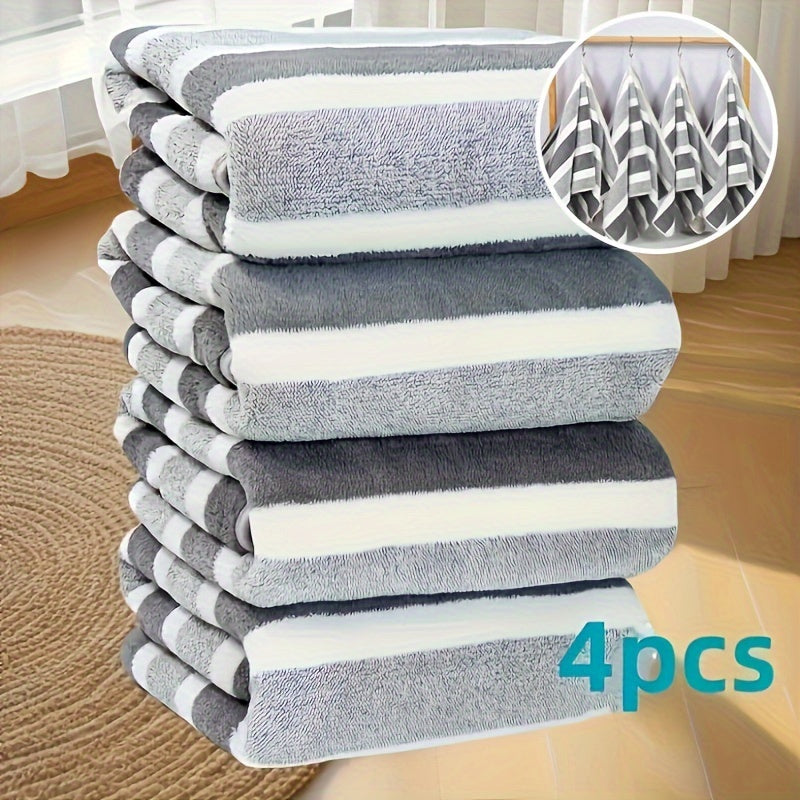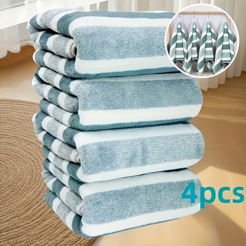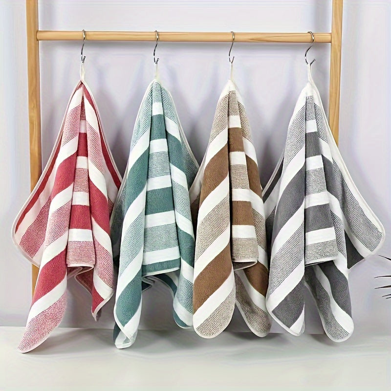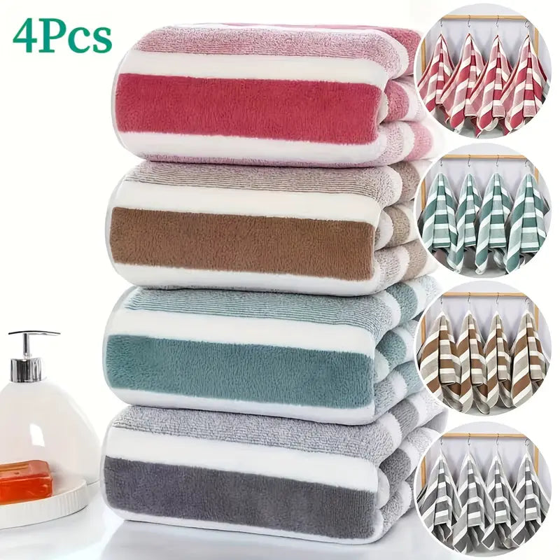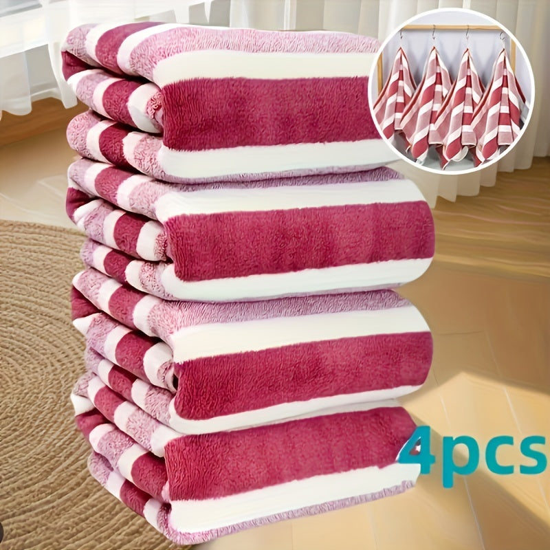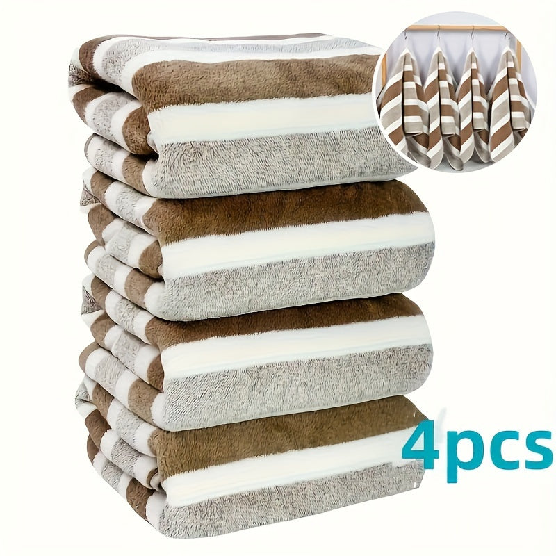 LDQ 4 Ultra-Soft Coral Fleece Tovallar - Tez quriydigan, chiziqli qo'l va yuz tovalari, 34.8x74.93 sm