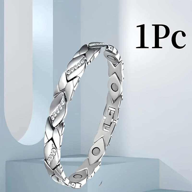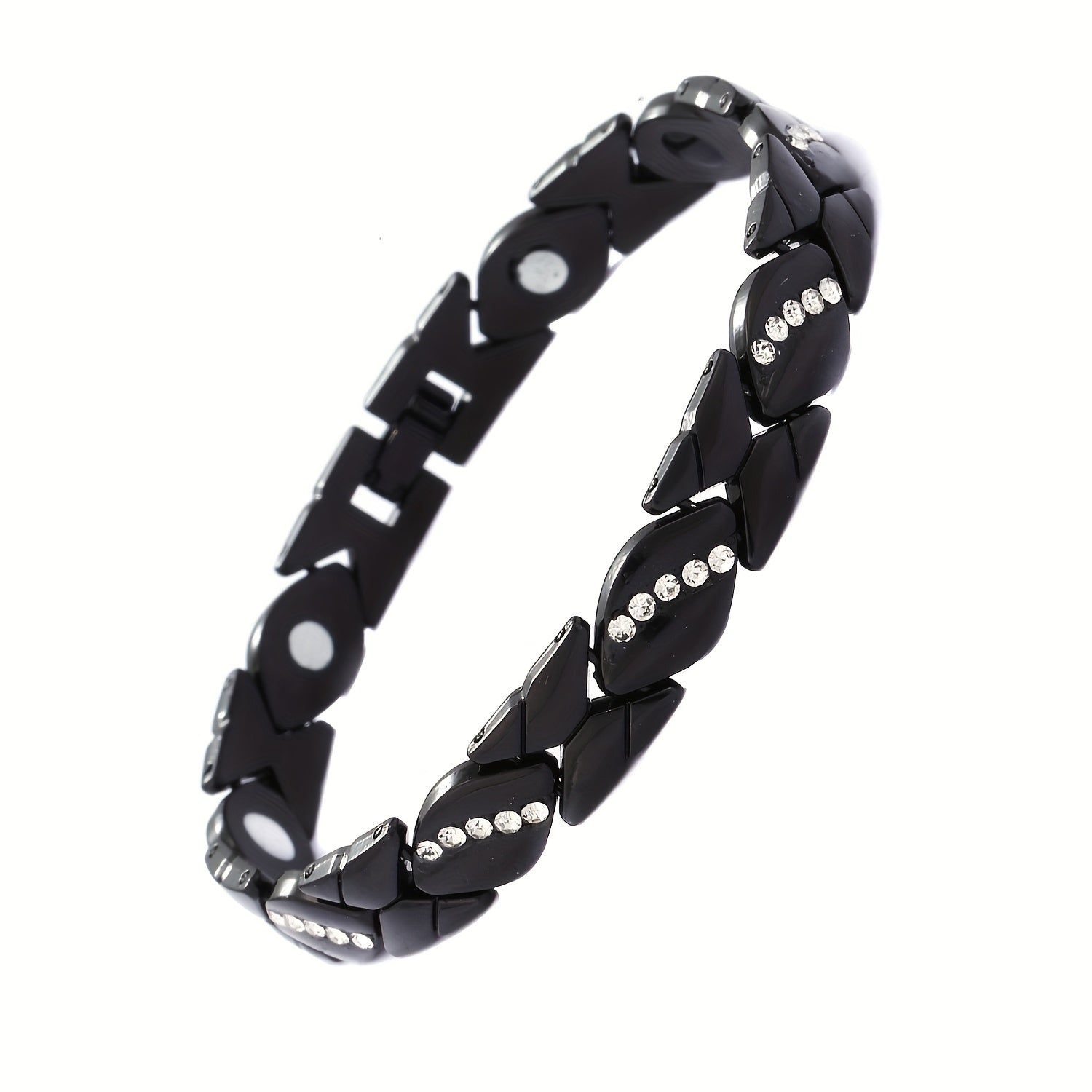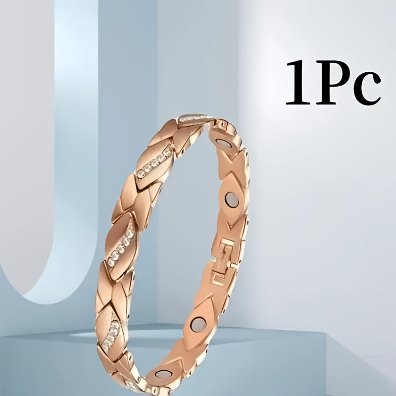 Ayollar uchun yaproq dizaynli magnit bilaguzuk, sink qotishmasidan tayyorlangan, kubik zirkon bilan, tug'ilgan kunlar, yubileylar, Sevishganlar kuni yoki Onalar kuni uchun sovg'a berish uchun ideal.