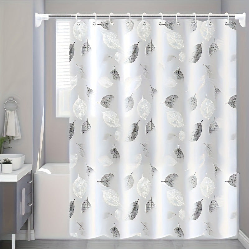 Metal grommetli barg naqshli dush pardasi, tozalash oson, qopqoq bilan birga, hammom bezatish va sovg'a berish uchun ideal.