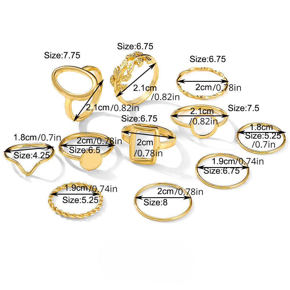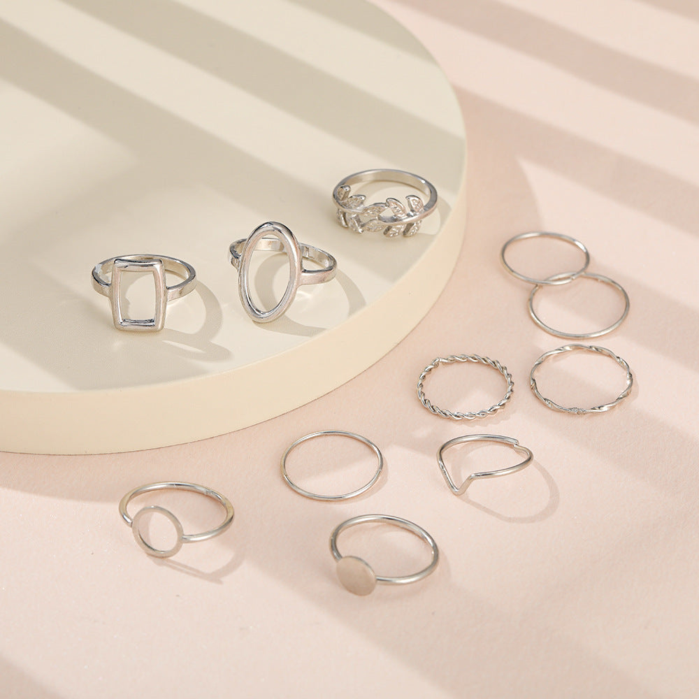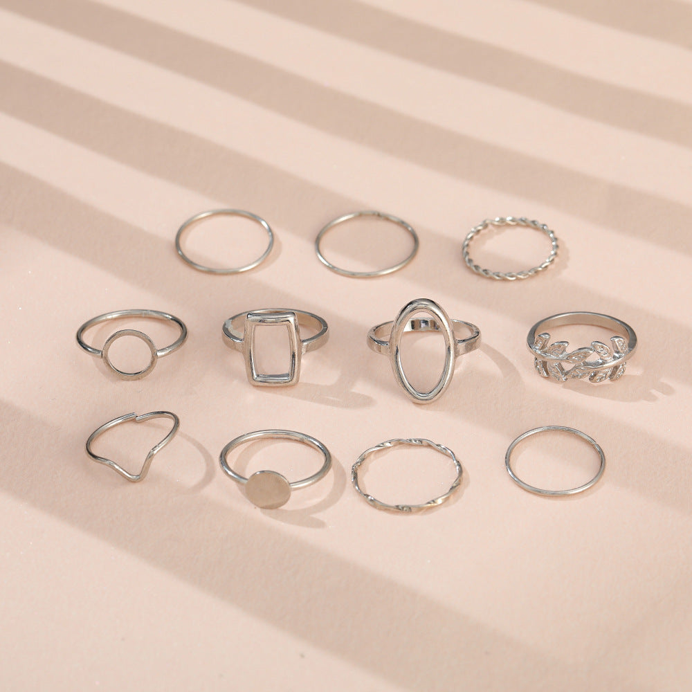 11 ta qo'shma uzukdan iborat barg mavzusidagi uzuk to'plami.