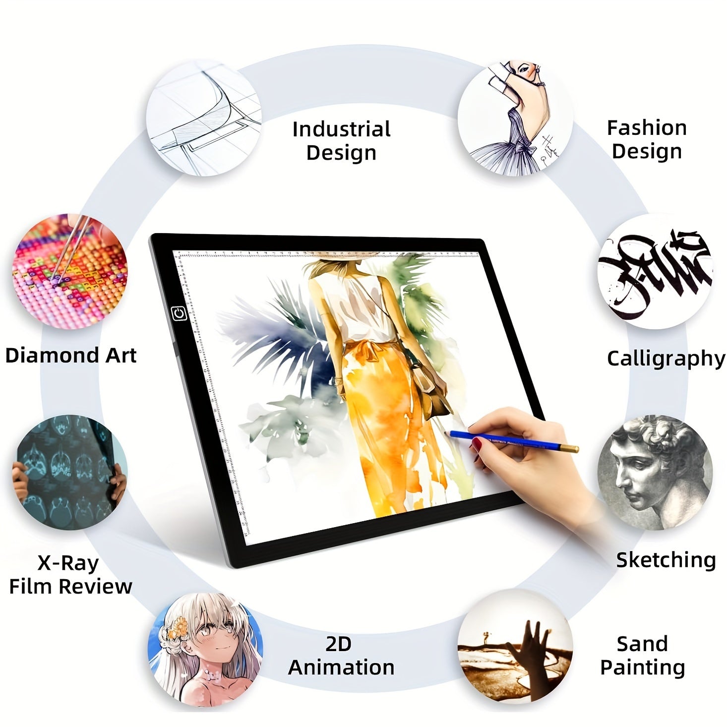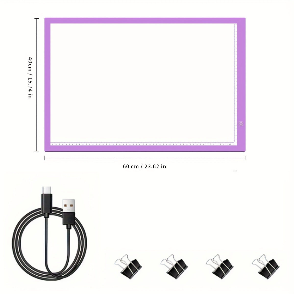 Akril LED yorug'lik padkasi olmos bo'yash va san'at loyihalari uchun, 3 yorqinlik darajasi va USB kabel bilan