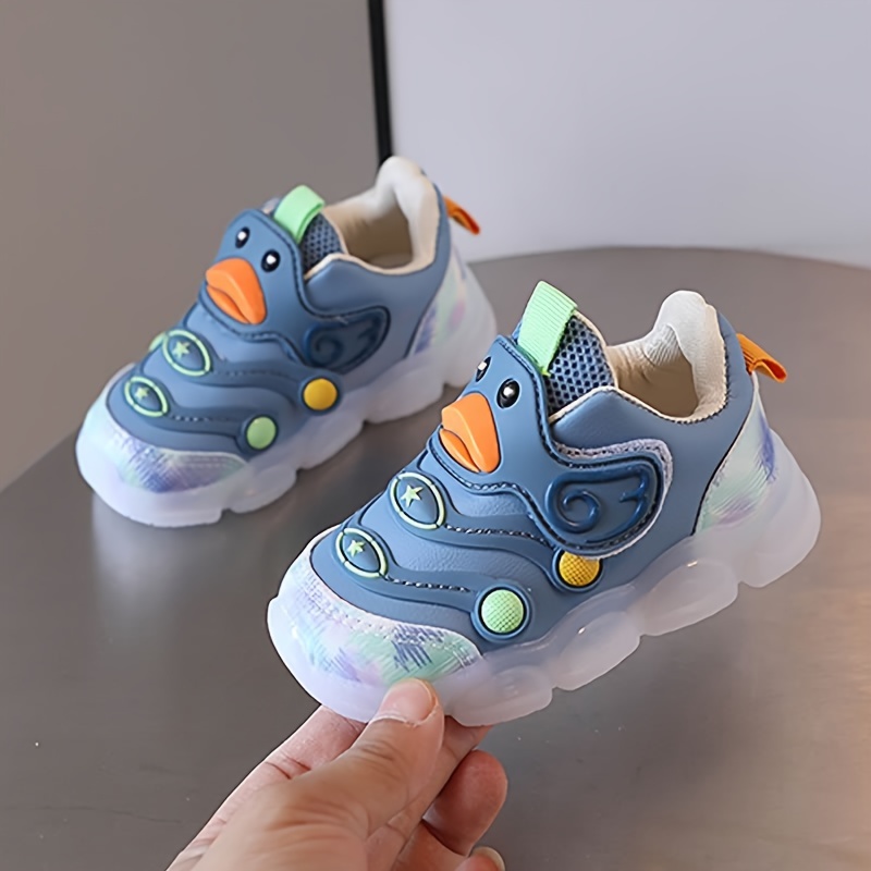 Bolalar uchun o'yinchoq dizaynlari, sirpanmaydigan kauchuk taglik, mato ichki taglik va ko'k rangdagi qopqoq bilan LED yoritilgan poyabzal.