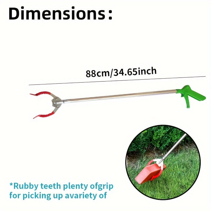 Yengil og'irlikdagi axlat yig'ish vositasi, qariyalar uchun EasyGrip dizayni bilan. Samarali axlat yig'ish uchun metall va plastik materiallar kombinatsiyasidan tayyorlangan. Axlatni osonlik bilan yig'ishga va atrof-muhitni toza saqlashga yordam beradi.