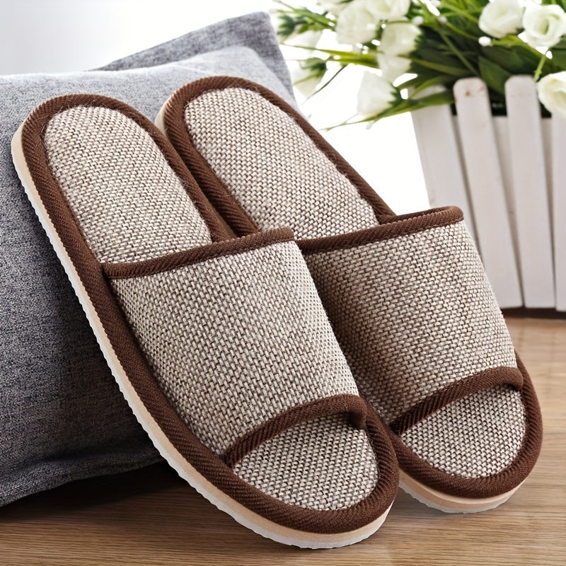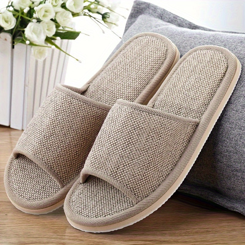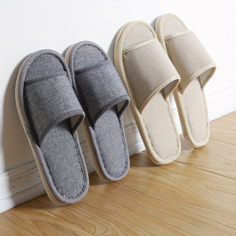 Yengil rangli mato ustki qismi va EVA taglikka ega, erkaklar va ayollar uchun qulay ichki uy poyafzallari.