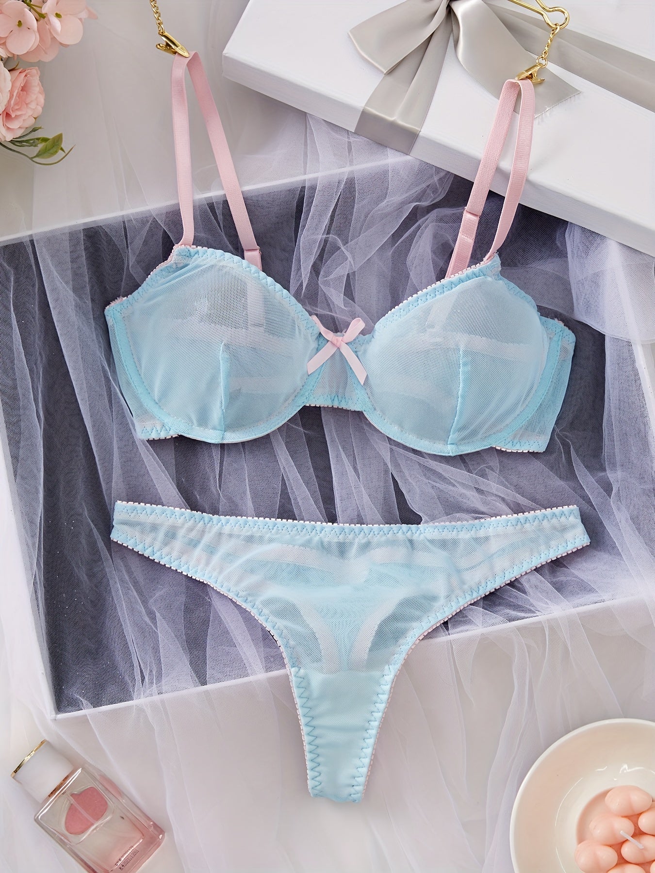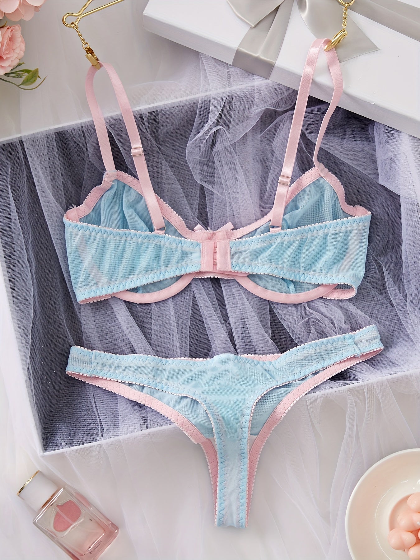 Yengil yelka tasmalari bilan ichki kiyim to'plami, brassiyer va ichki kiyimni o'z ichiga oladi, ayollarning sexy kiyimlari uchun.