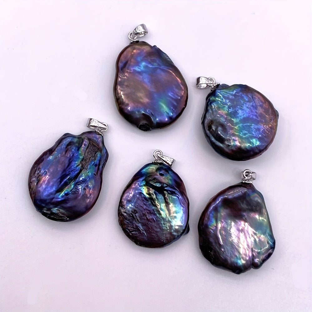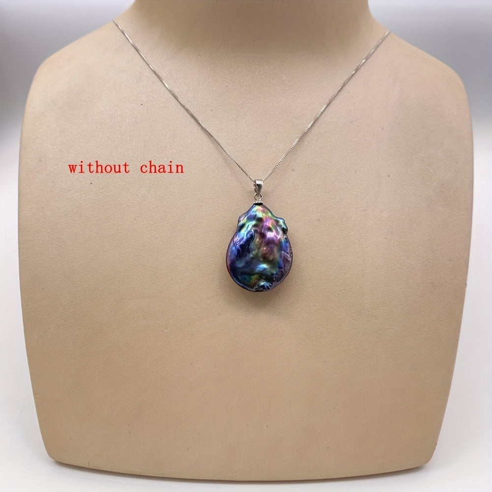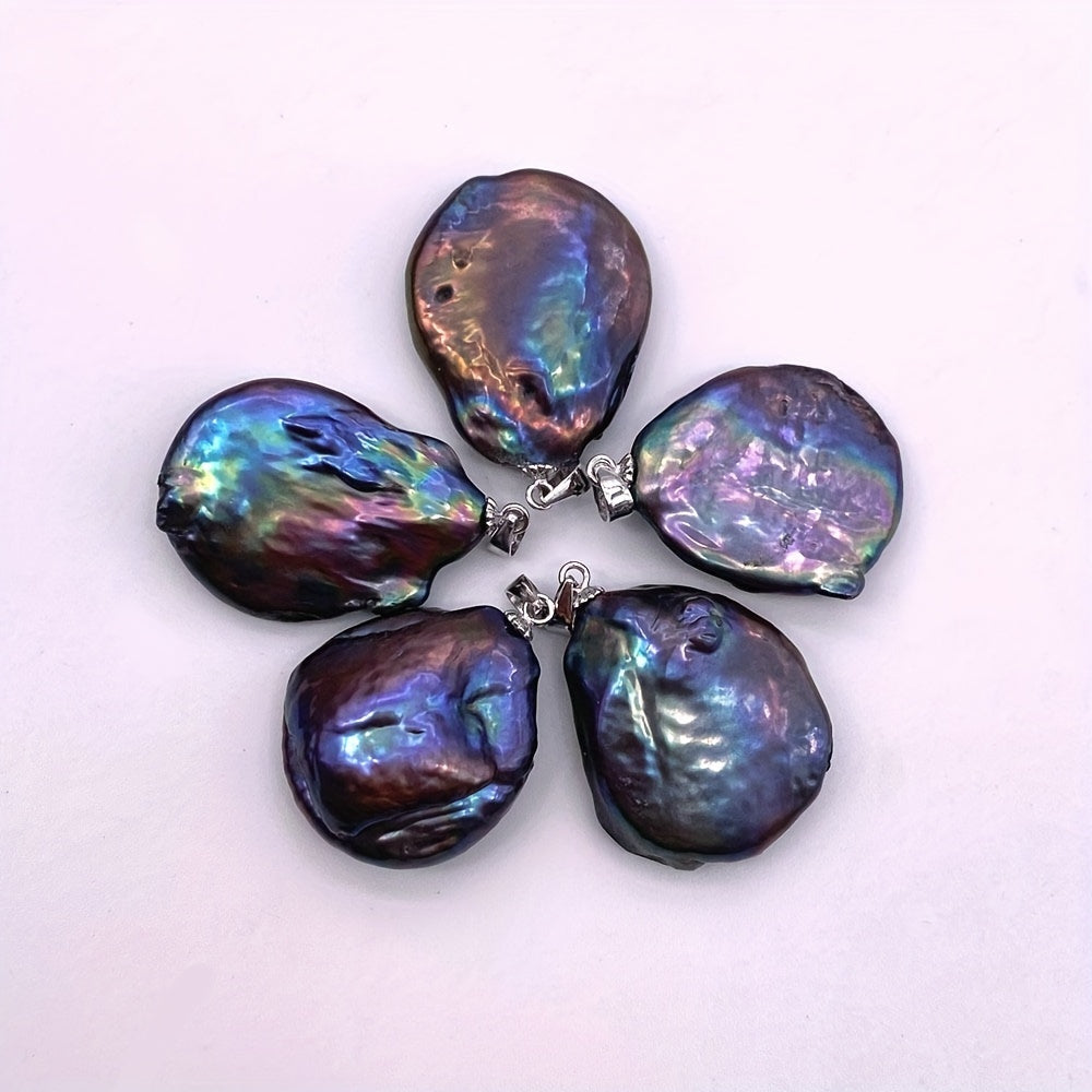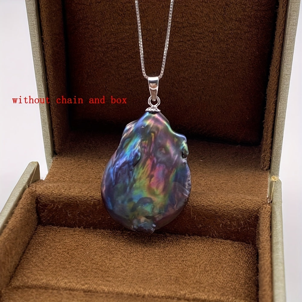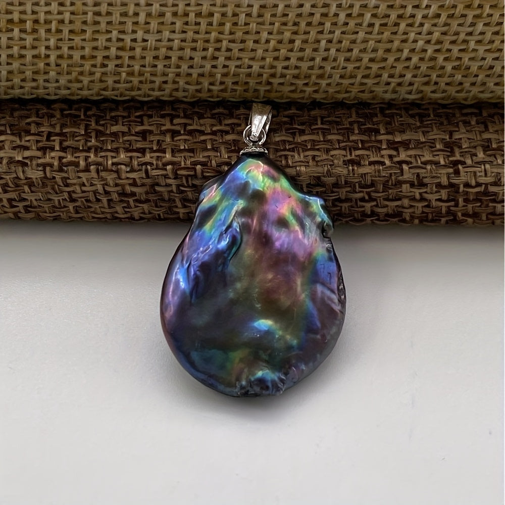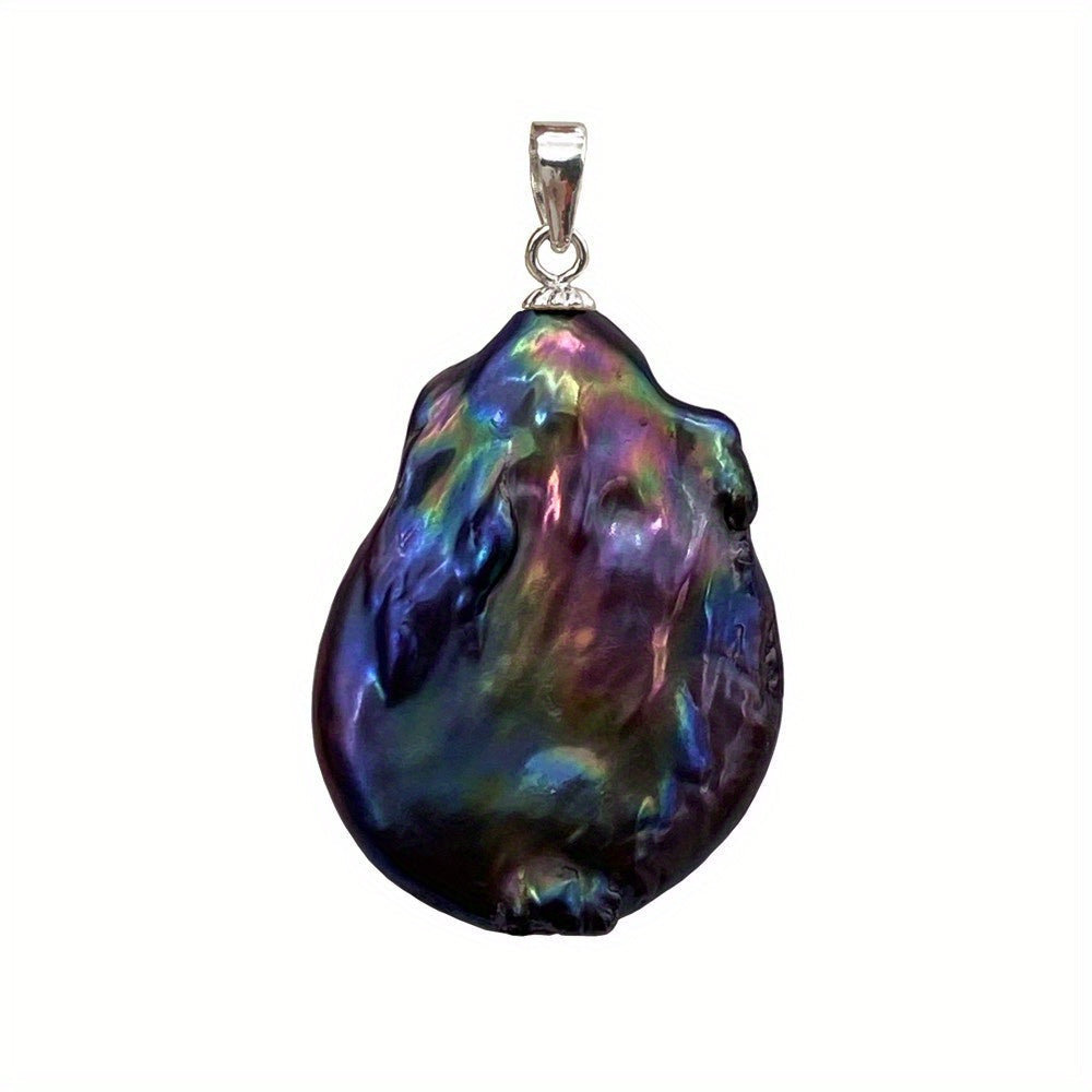 Qora va ko'k barokko dizayni bilan inlay qilingan uzun tangali tekis tabiiy shirin suv marvaridi pendant, taxminan 24mm o'lchamda. Quti yoki zanjir bilan kelmaydi. Rangiga ko'ra kumush.