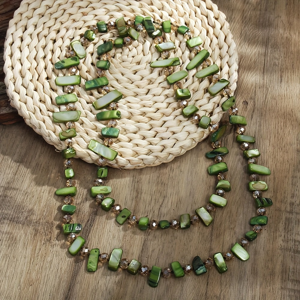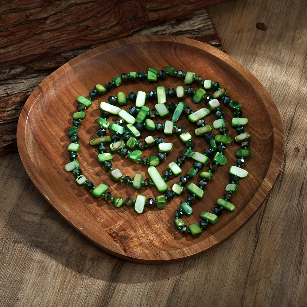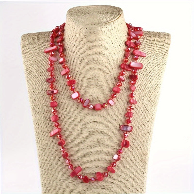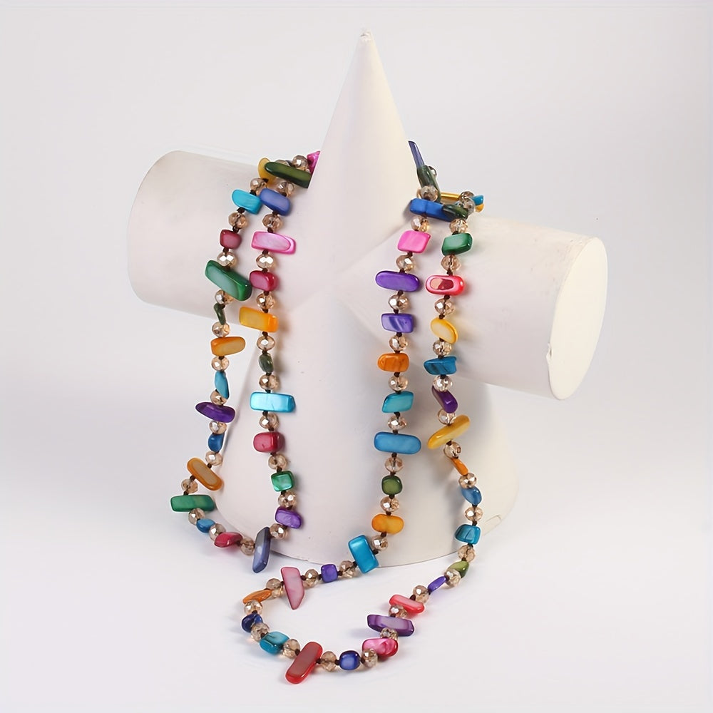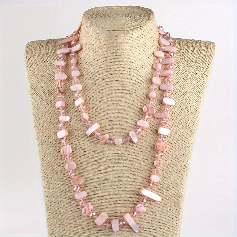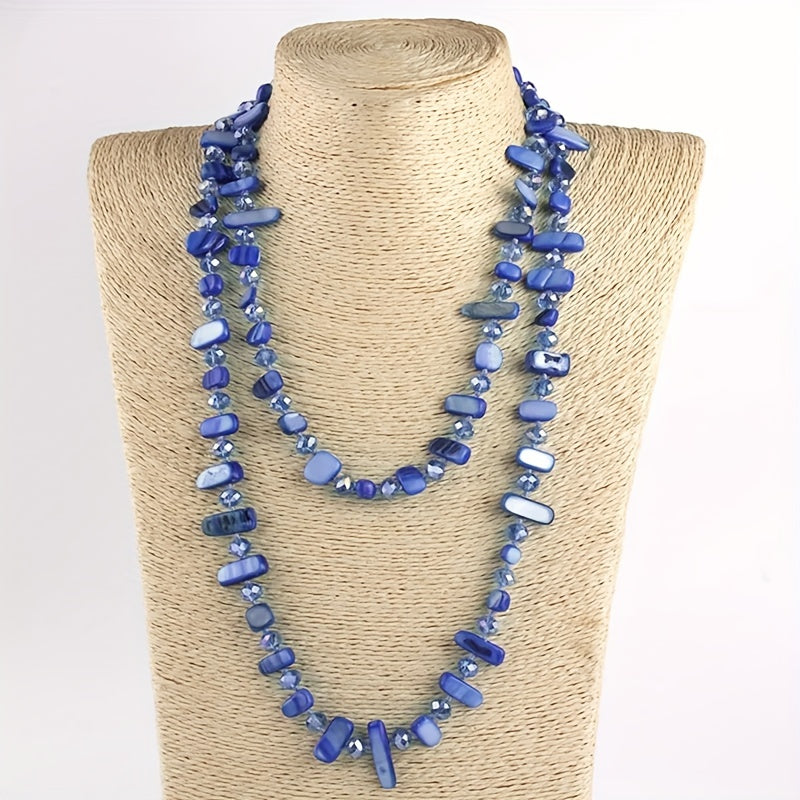 Kamalak kristallari va qobiq marjonlari bilan bezatilgan uzun tugilgan marjon - boho-chic, bohem uslubini sevuvchi ayollar uchun ideal sovg'a.