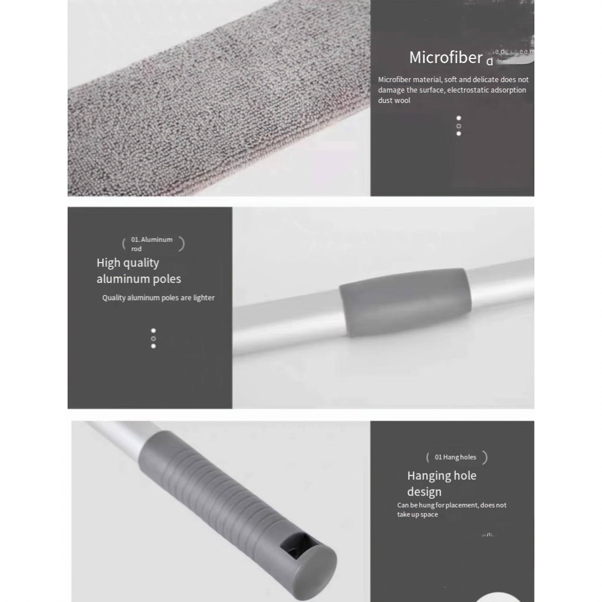Uzoq muddatli chang tozalash cho'tkasi: Samarali tozalash uchun mustahkam alyuminiy ustunlar va mikrofiber material.