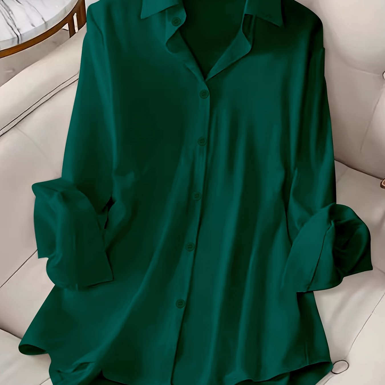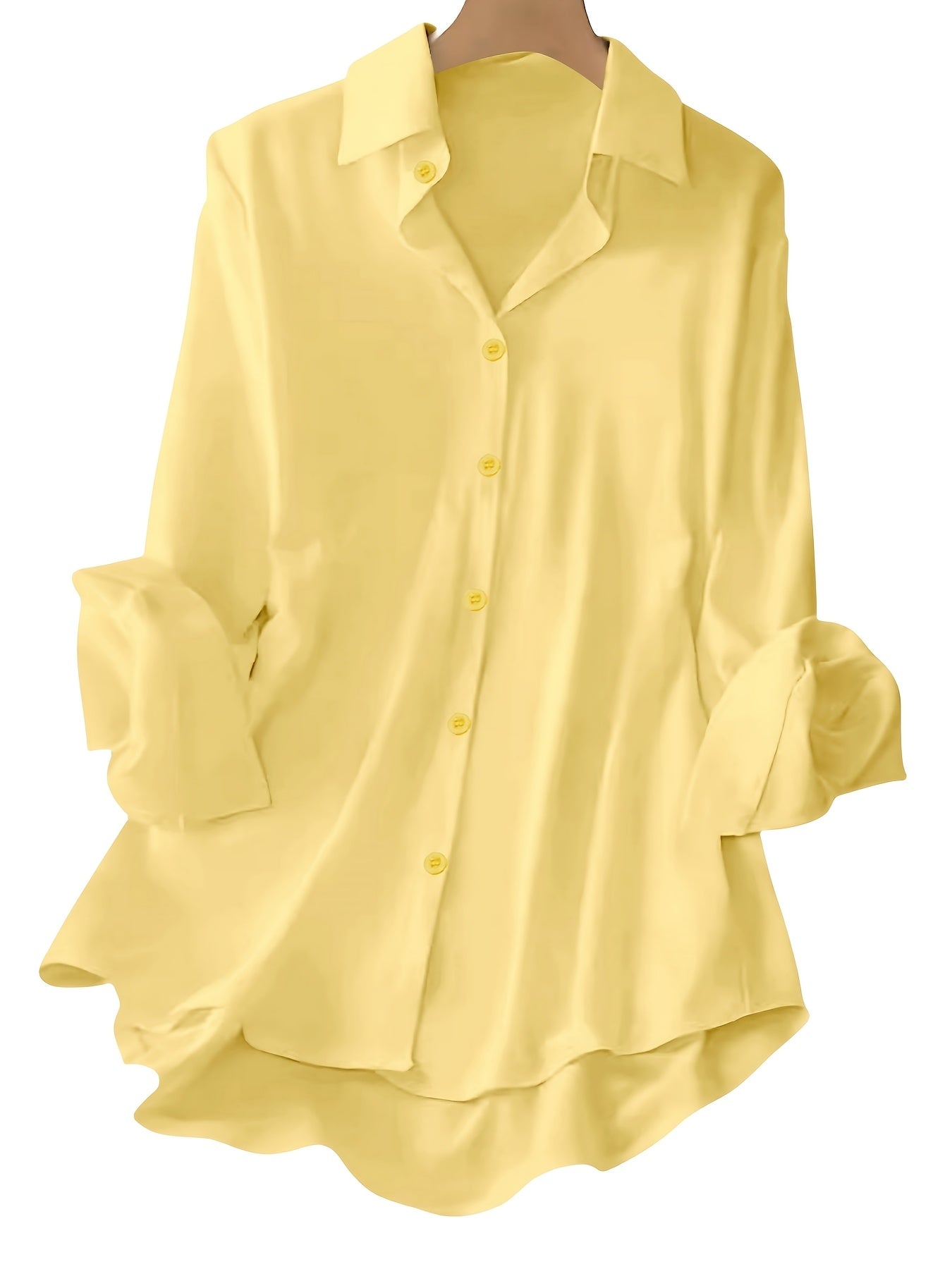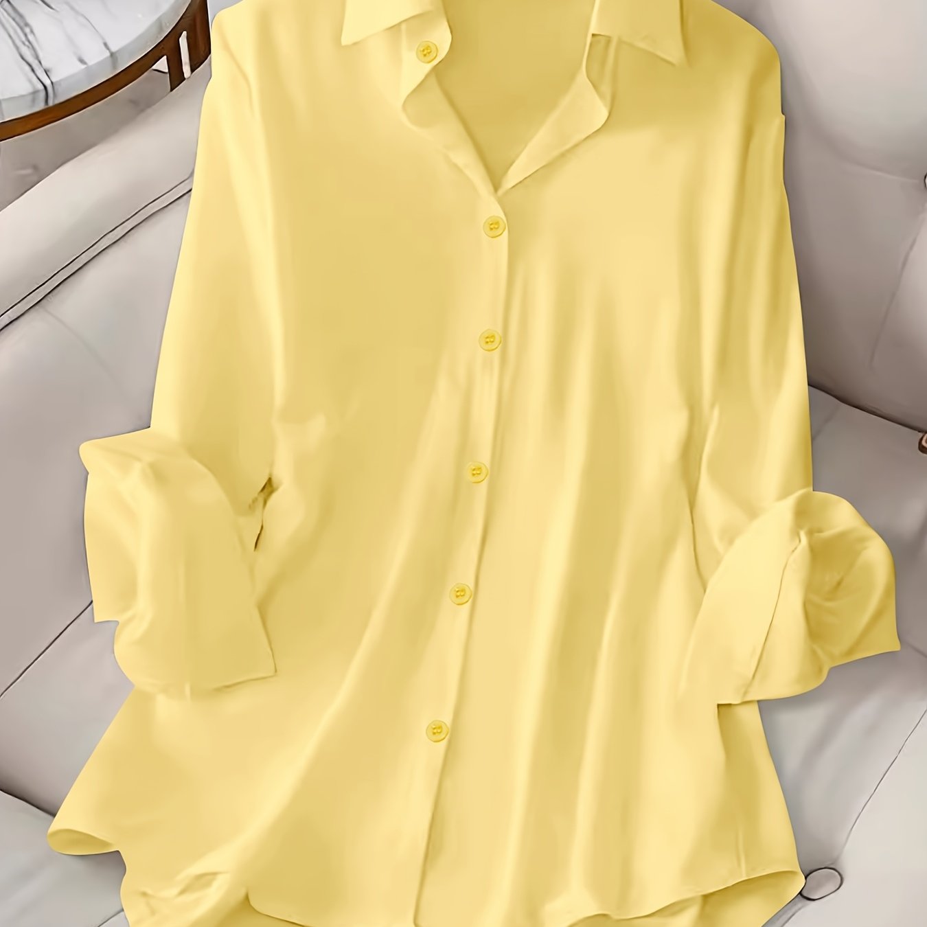Katta o'lchamdagi ayollar uchun bir rangli uzun yengli tugmachali ko'ylak.