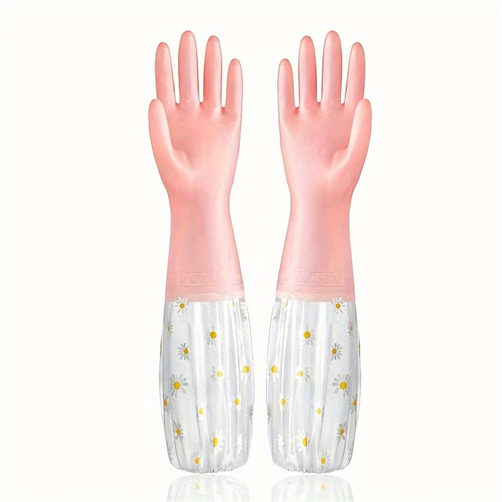 "Uzoq qo'lqopli Romashka kauchuk qo'lqoplar: Idish yuvish, oshxona tozalash, pechni parvarish qilish va uy hayvonlariga g'amxo'rlik qilish uchun mukammal bo'lgan bir juft yumshoq, egiluvchan va qayta ishlatiladigan qo'lqoplar."