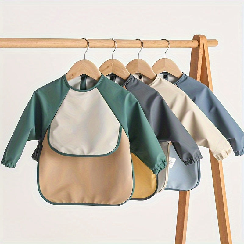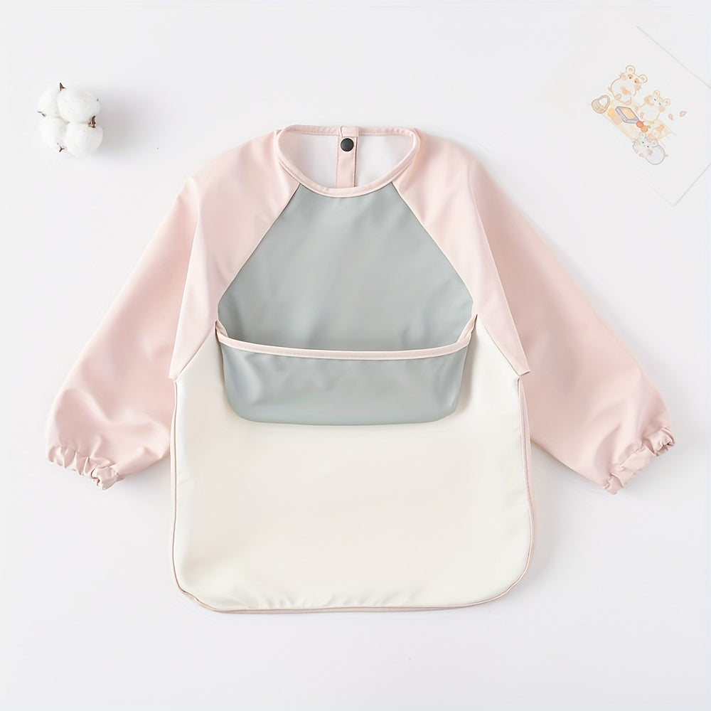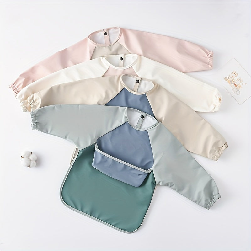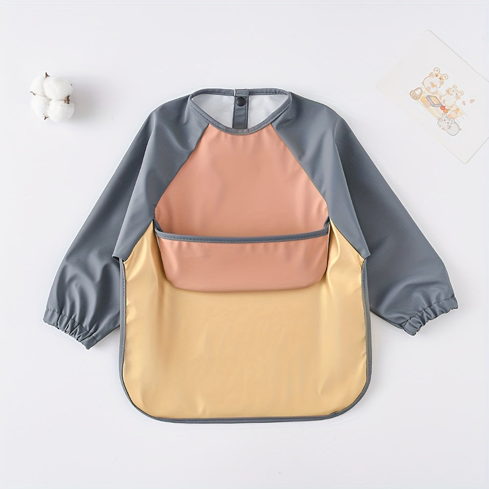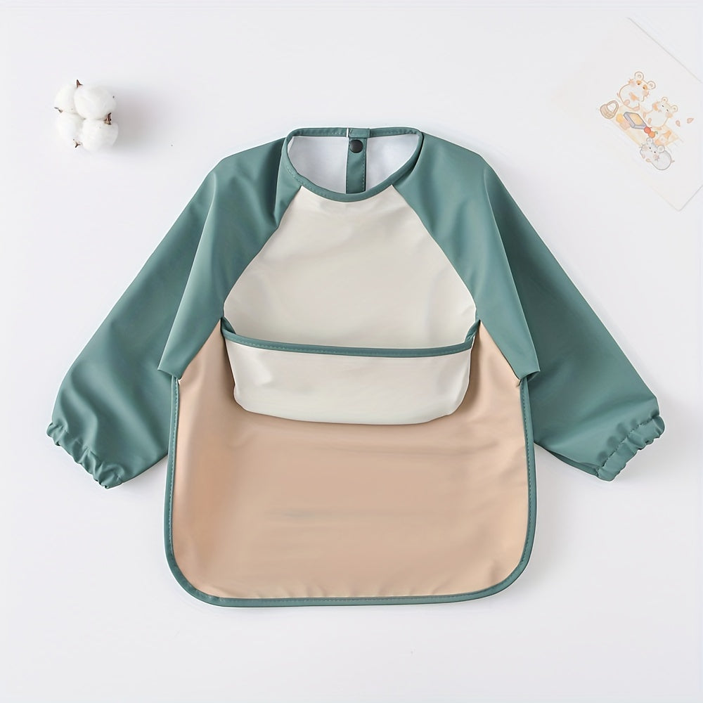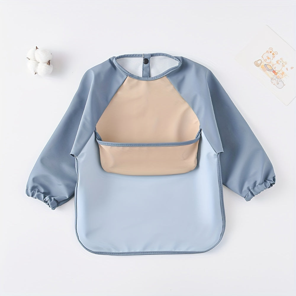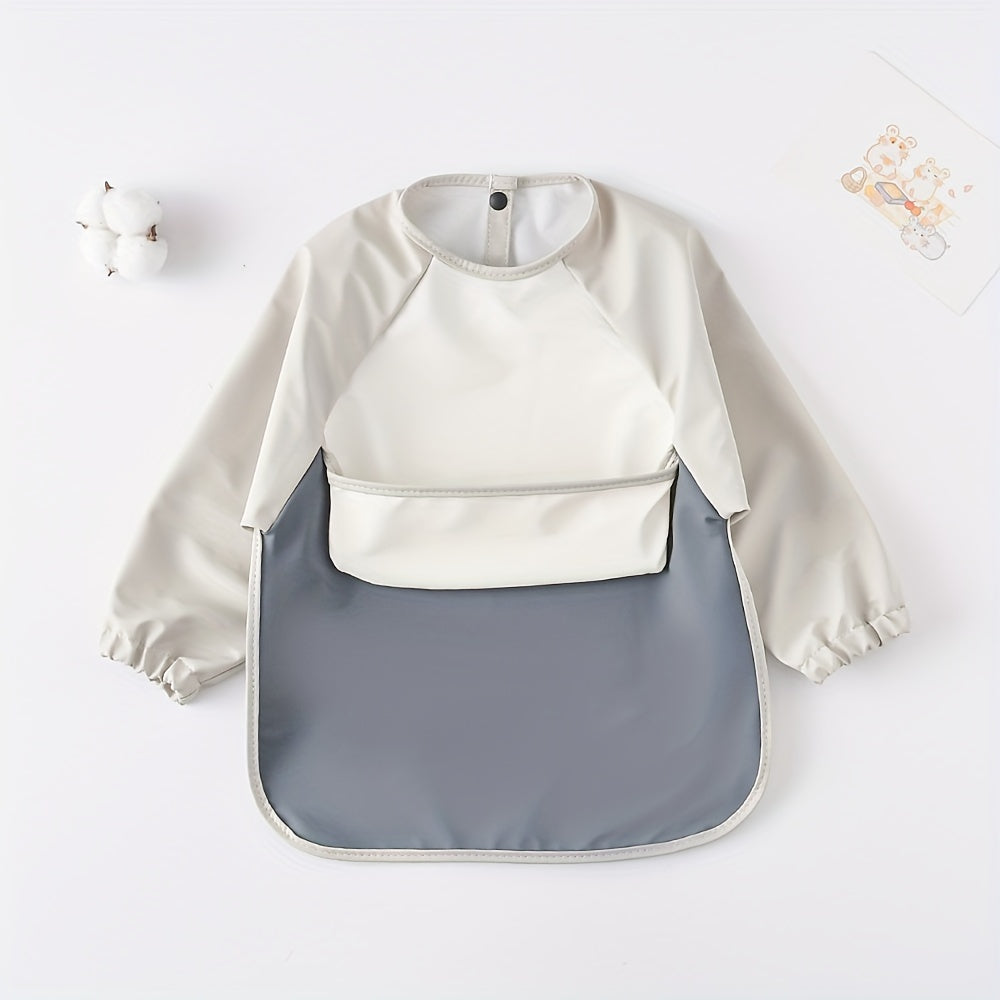 Bola uchun uzun qoʻlqopli, teskari oson ochiladigan ovqatlanish bibsi, suv o'tkazmaydigan choʻntak bilan, ovqatlanish uchun