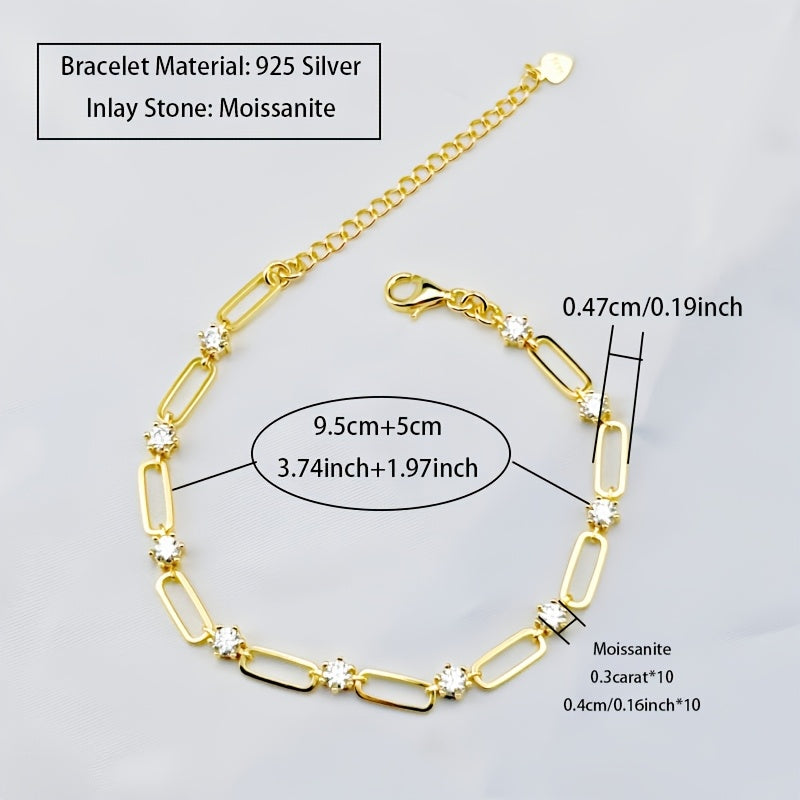 Uniseks Boho 18K oltin qoplangan kumush Moissanit bilaguzuk 3 karatli zargarlik buyumlari