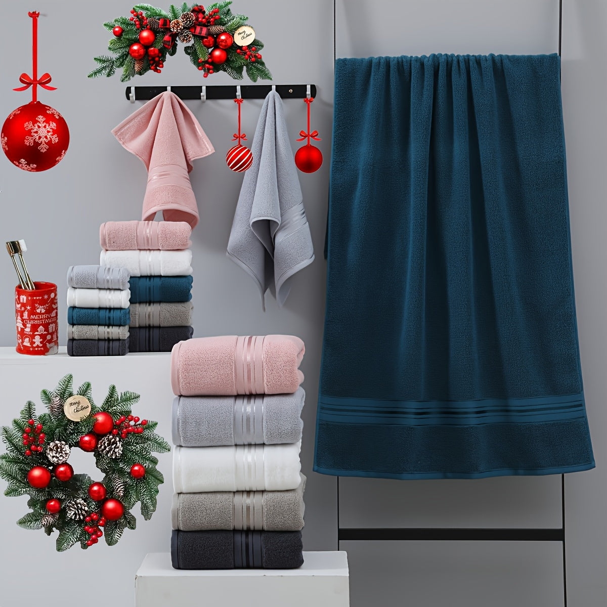 Hamom, mehmonxona yoki spa uchun mo'ljallangan 8 dona hashamatli paxta sochiq to'plami, 2 ta hammom sochiq, 2 ta qo'l sochiq va 4 ta yuvish sochiqni o'z ichiga oladi.