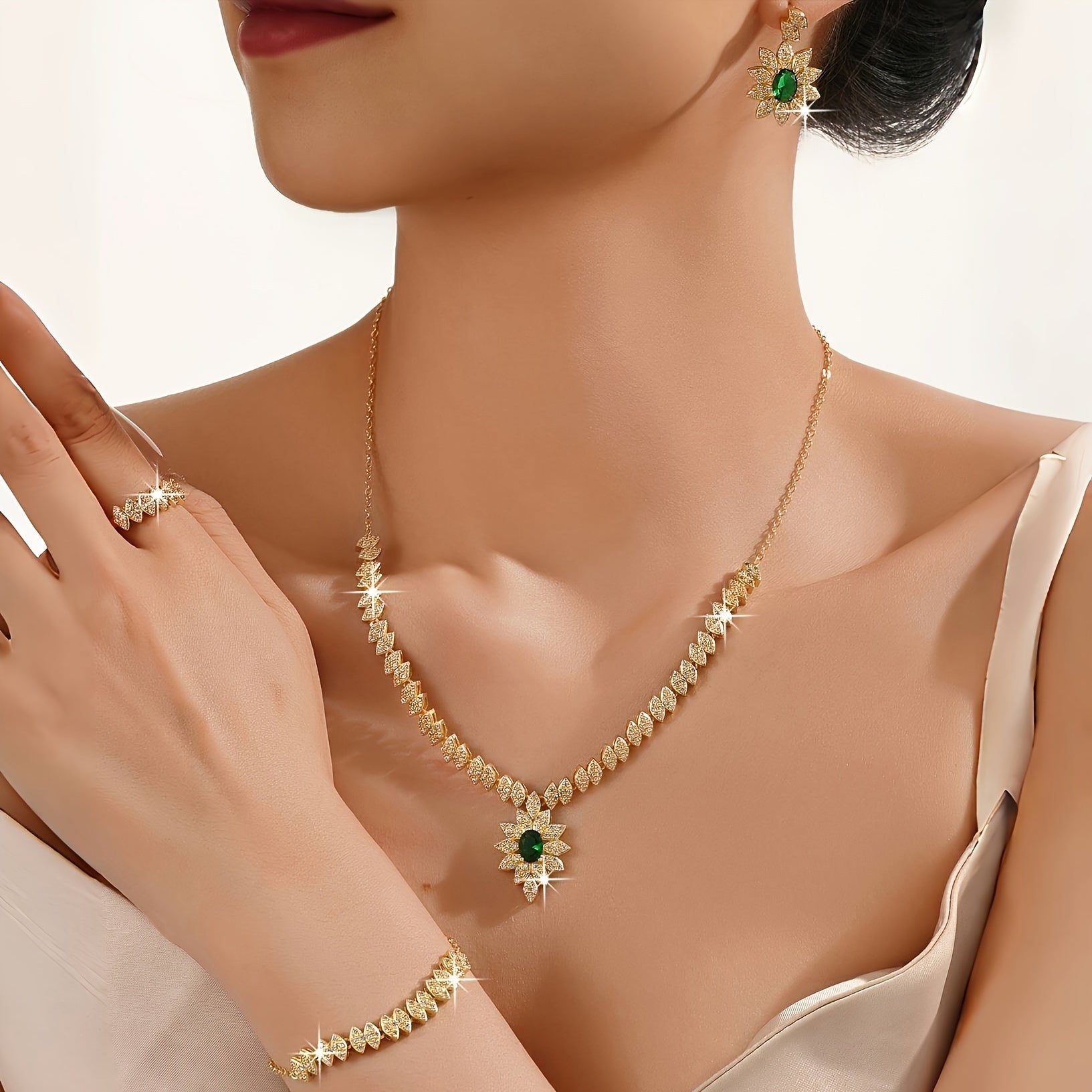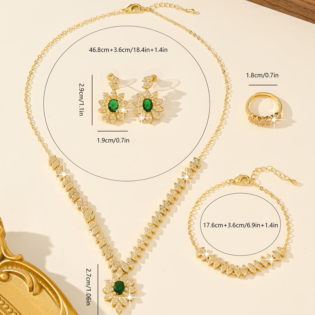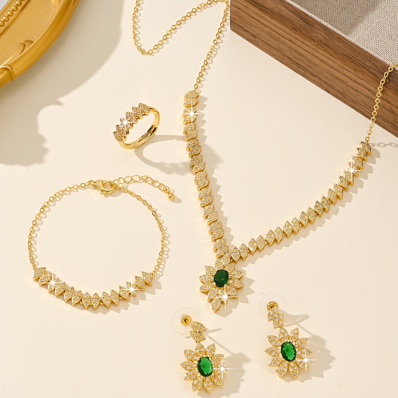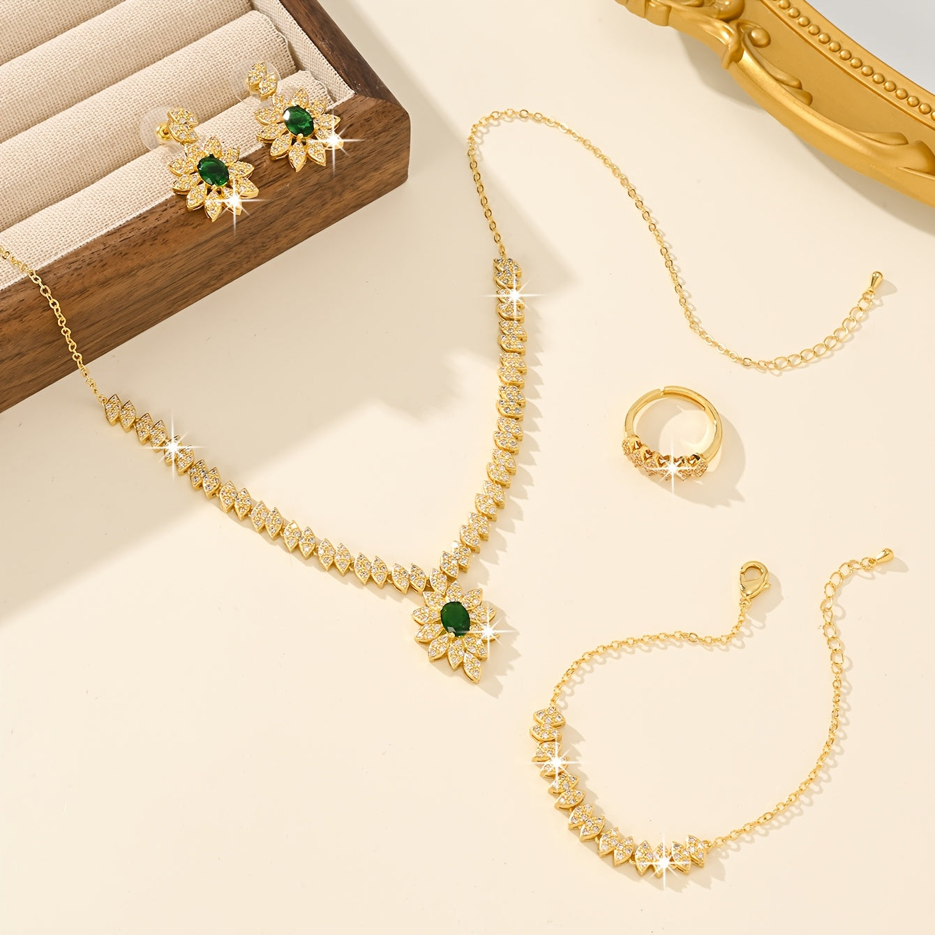 "Hashamatli Gullar Bud Dizayni Qizlar Zargarlik To'plami - 5 Dona o'z ichiga oladi, 18K Oltin Qoplangan Mis va Sintetik Zirconiyadan tayyorlangan. Har kuni kiyish va to'ylar uchun mukammal sovg'a."