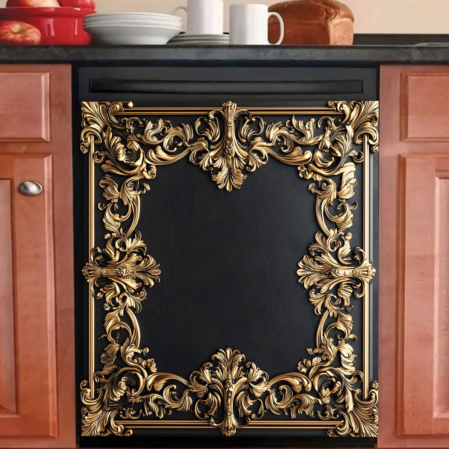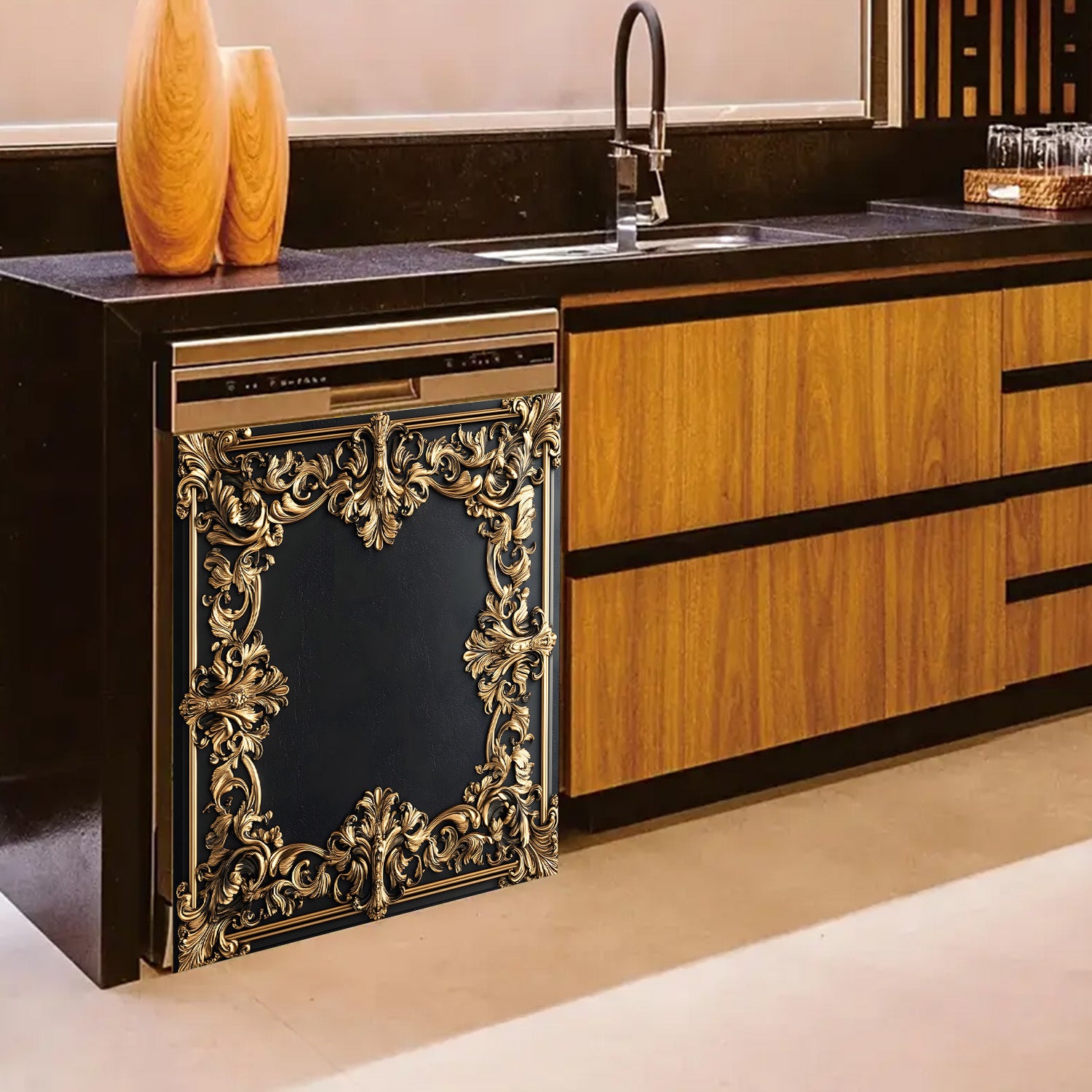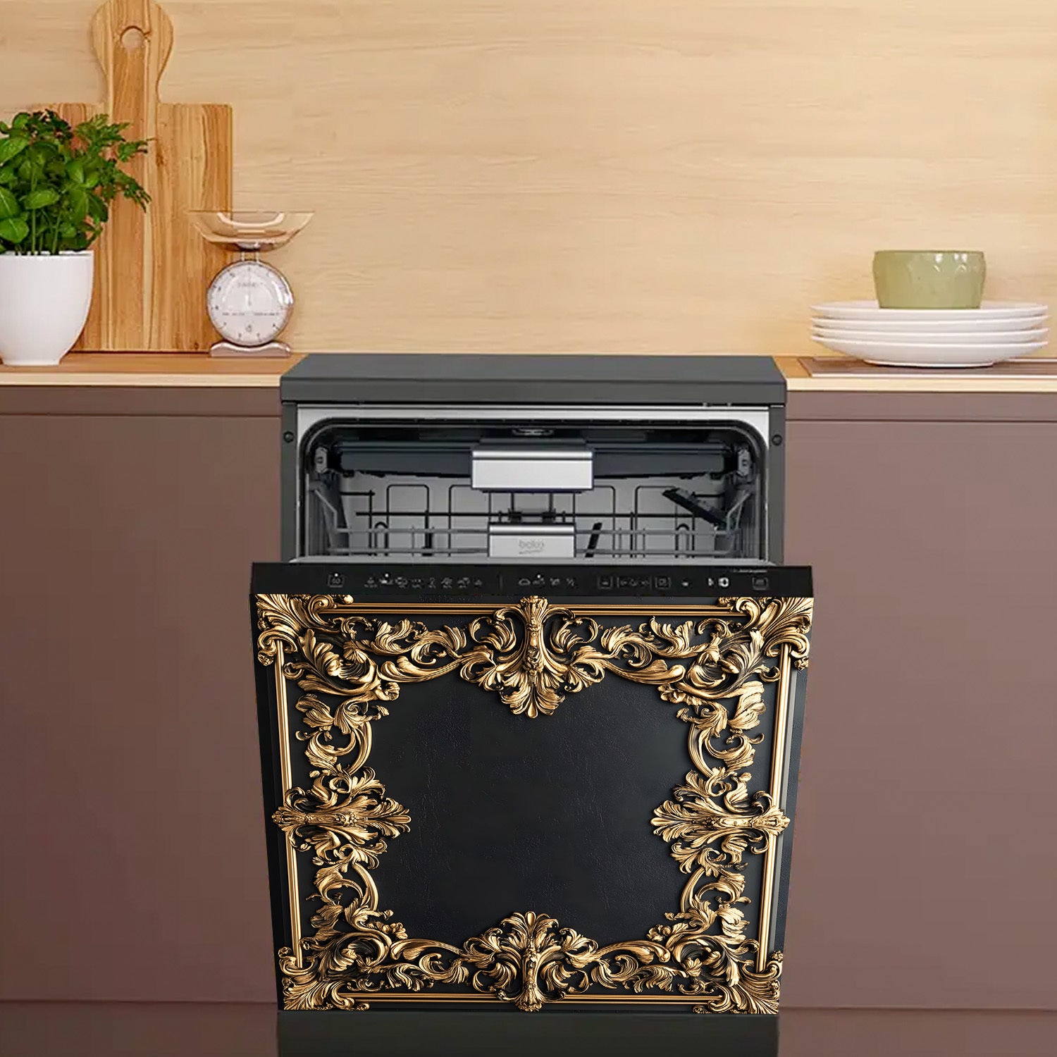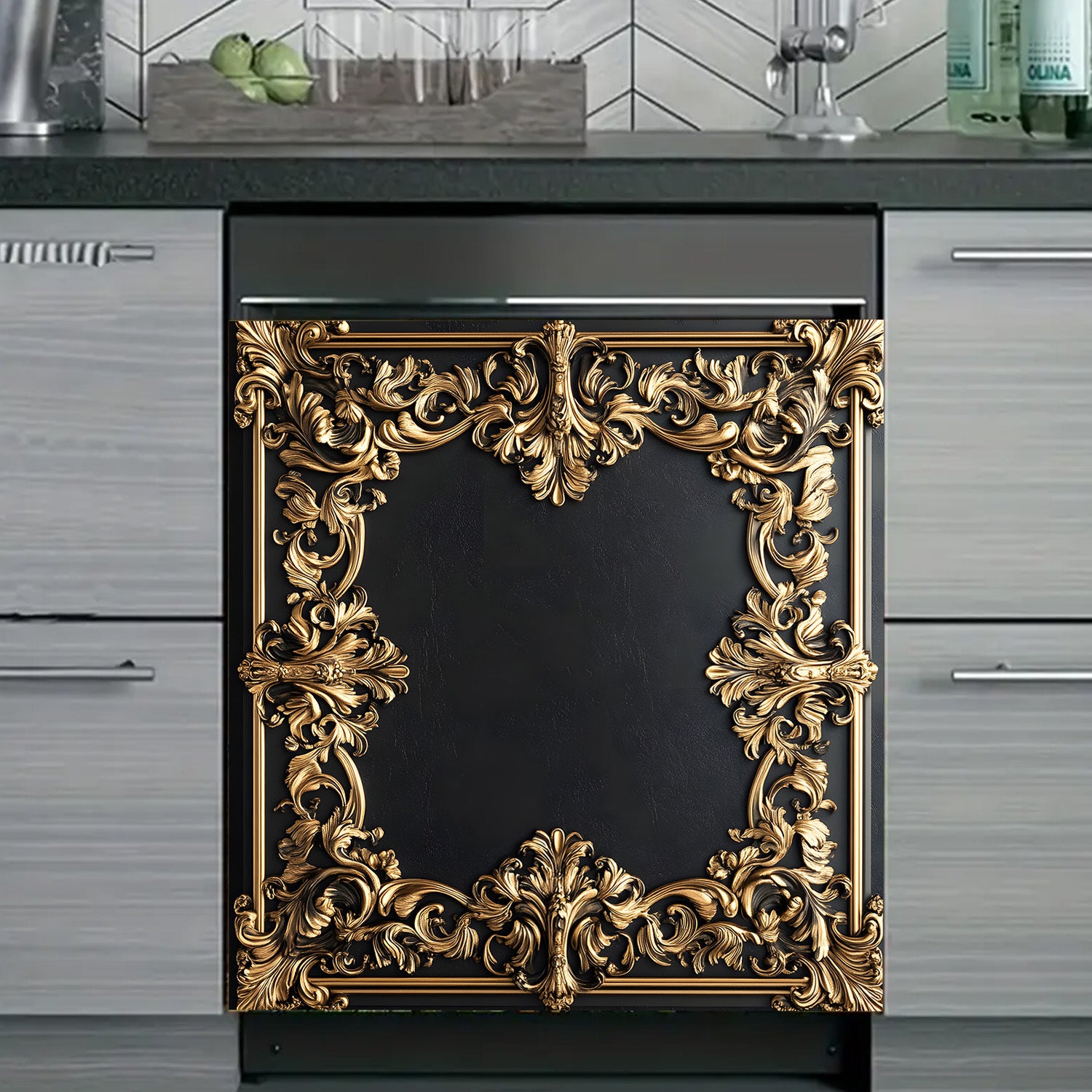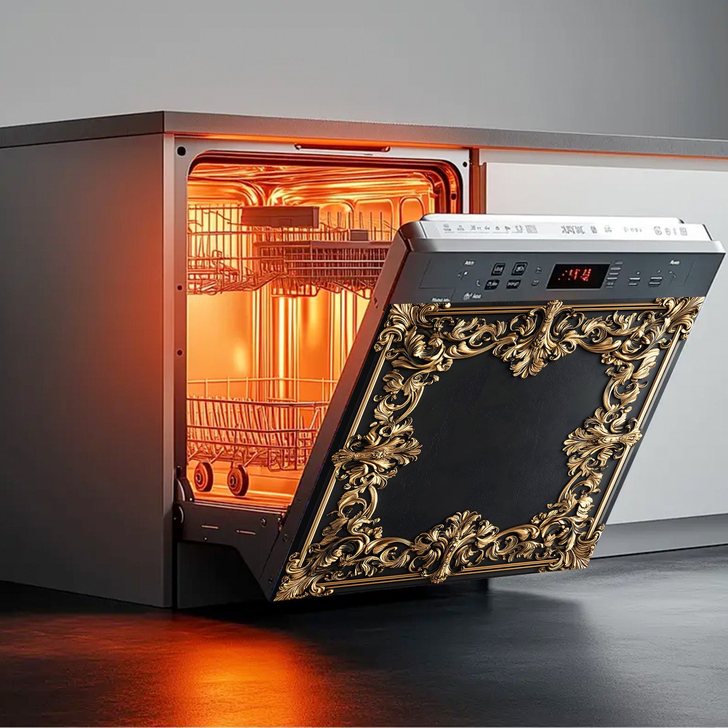 Oltin gul bezakli idish-tovoq mashinasi magnit qopqog'i, suv o'tkazmaydigan, issiqlikka chidamli metall panel dekor