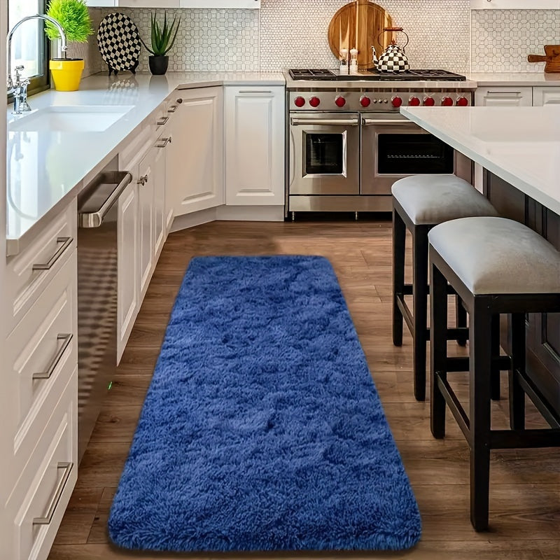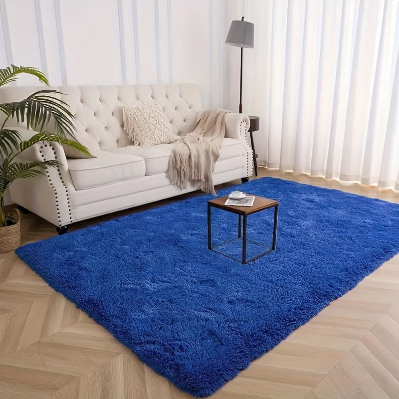 Mavjuda bo'lgan turli o'lchamlarda, yashash xonalari, yotoq xonalari, koridorlar, ofislar va ichki joylar uchun ideal bo'lgan, yuqori sifatli polyesterdan tayyorlangan, yumshoq va pufak, sirg'almas, hashamatli ko'l ko'k geometrik jun gilam.