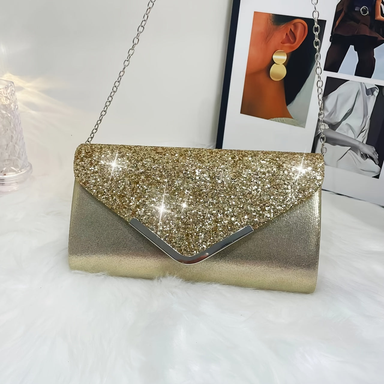 To'ylar va partiyalar uchun hashamatli metall bezakli kechki sumka.