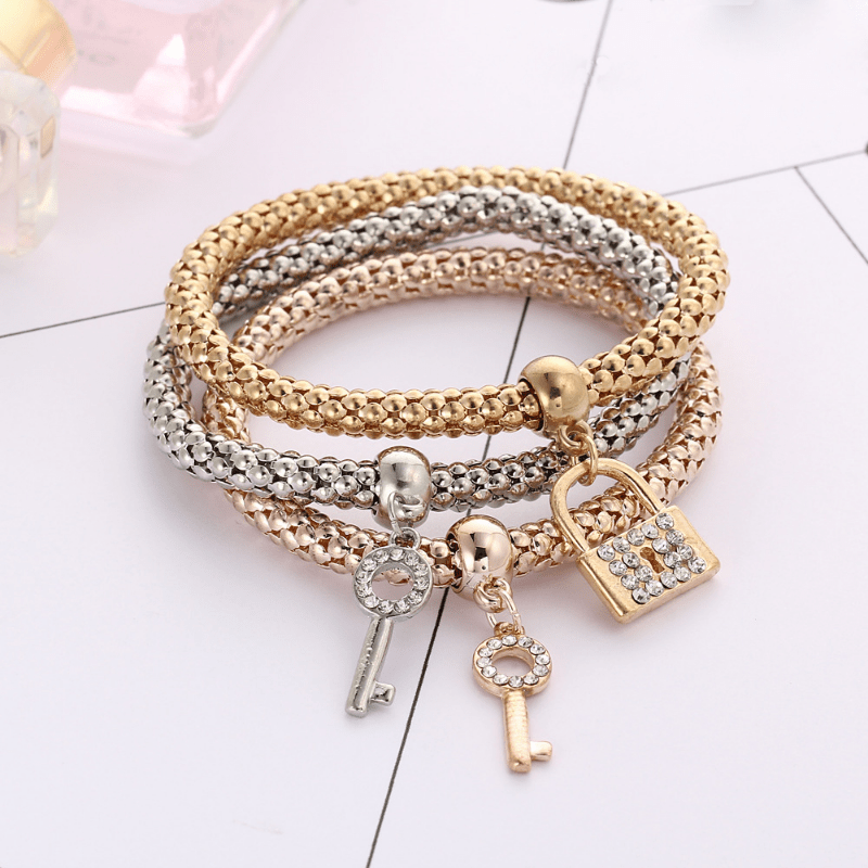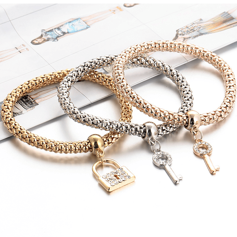 Ayollar uchun plastmassa mozaika va qulflar bilan to'plamli alloy taqiladigan bilaguzuklar to'plami
