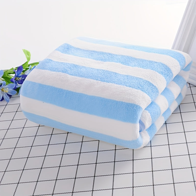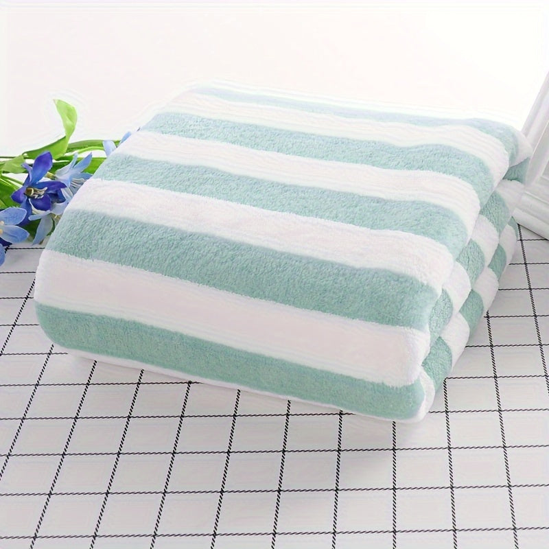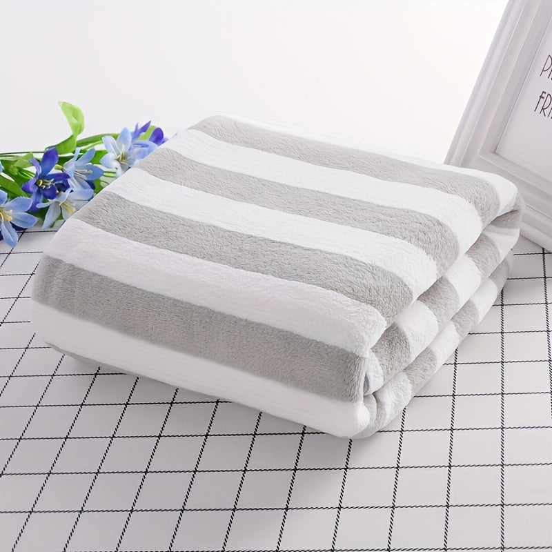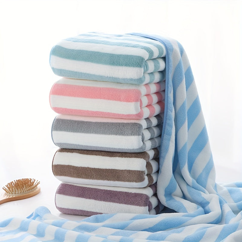 Sahilda va dushda foydalanish uchun mo'ljallangan, tez quriydigan, to'zg'imsiz koral fliysidan tayyorlangan, hashamatli, ultra-yumshoq qirg'oq chiziqli hammom sochi.