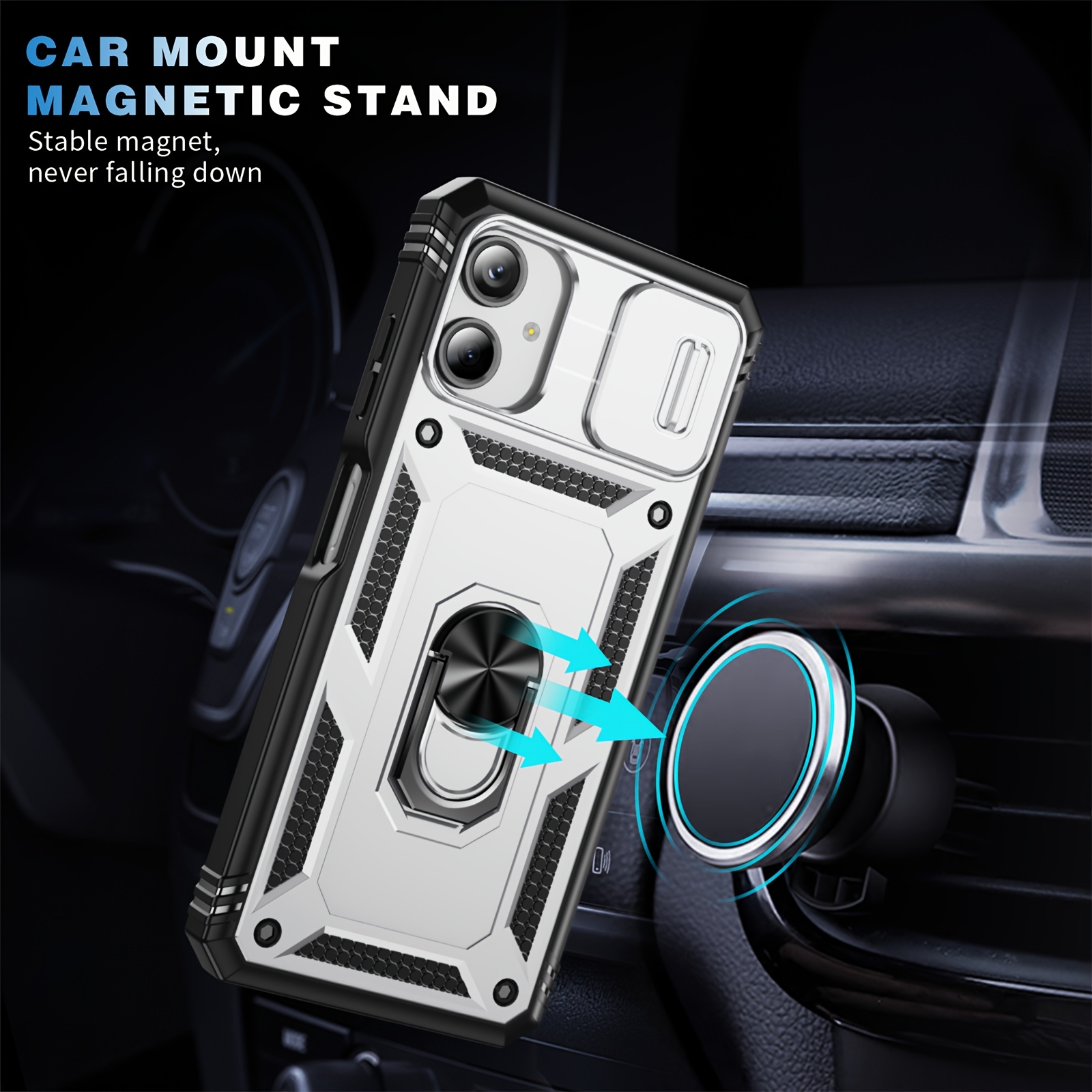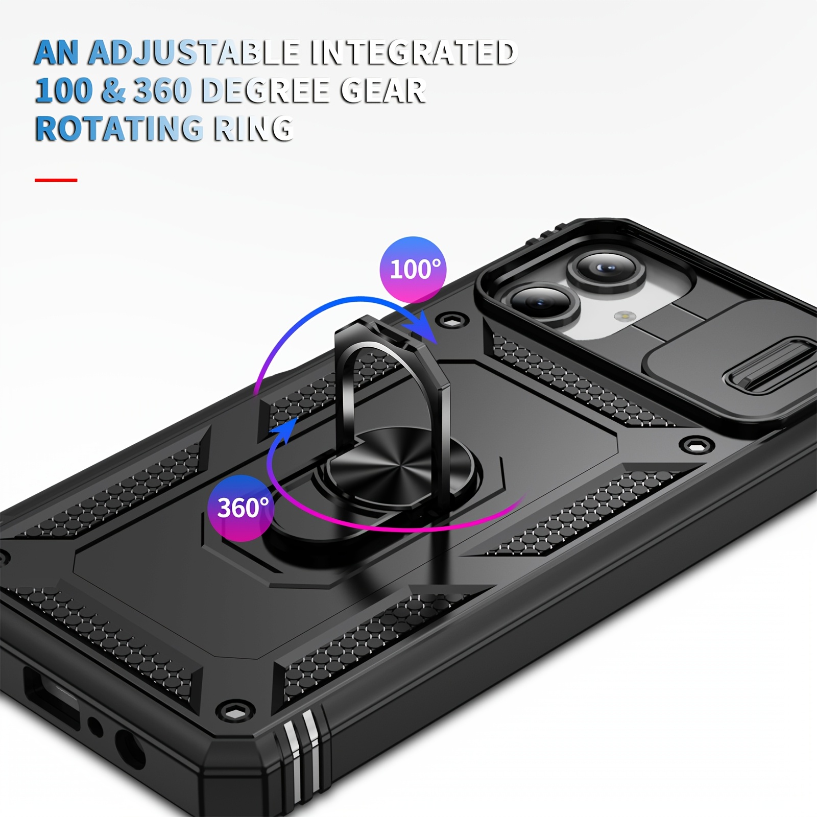 SamSung Galaxy telefonlari uchun yashirin kamera slayd qopqog'i va aylanuvchi halqa ushlagichi bilan jihozlangan 2-in-1 hashamatli himoya telefon qopqog'i.