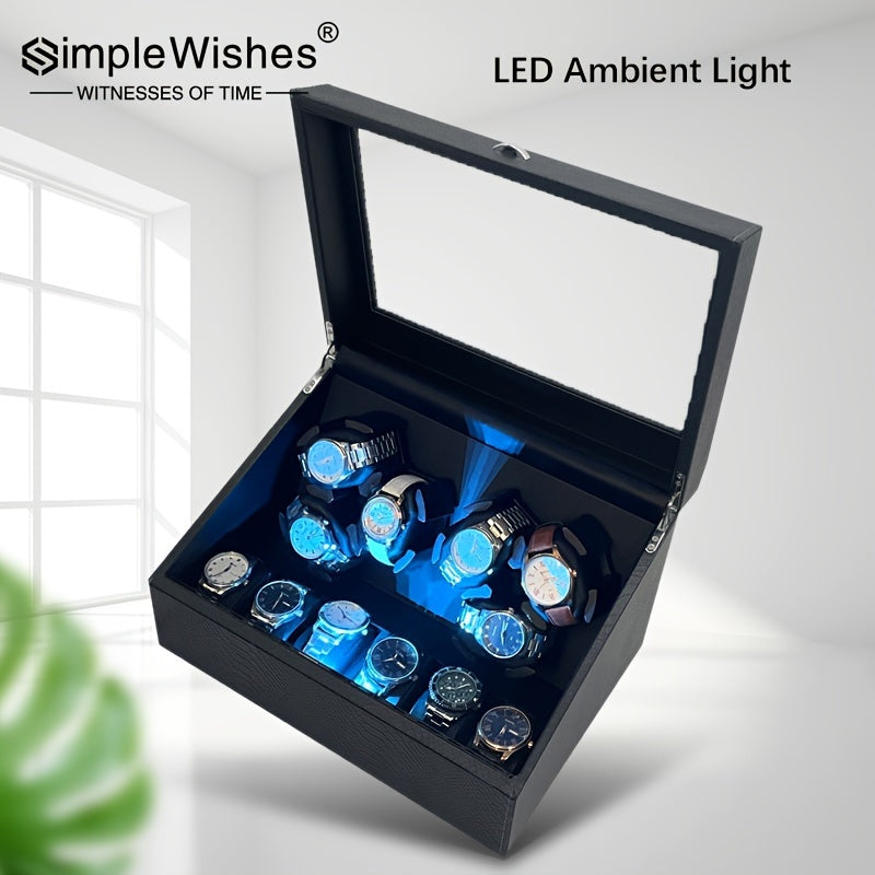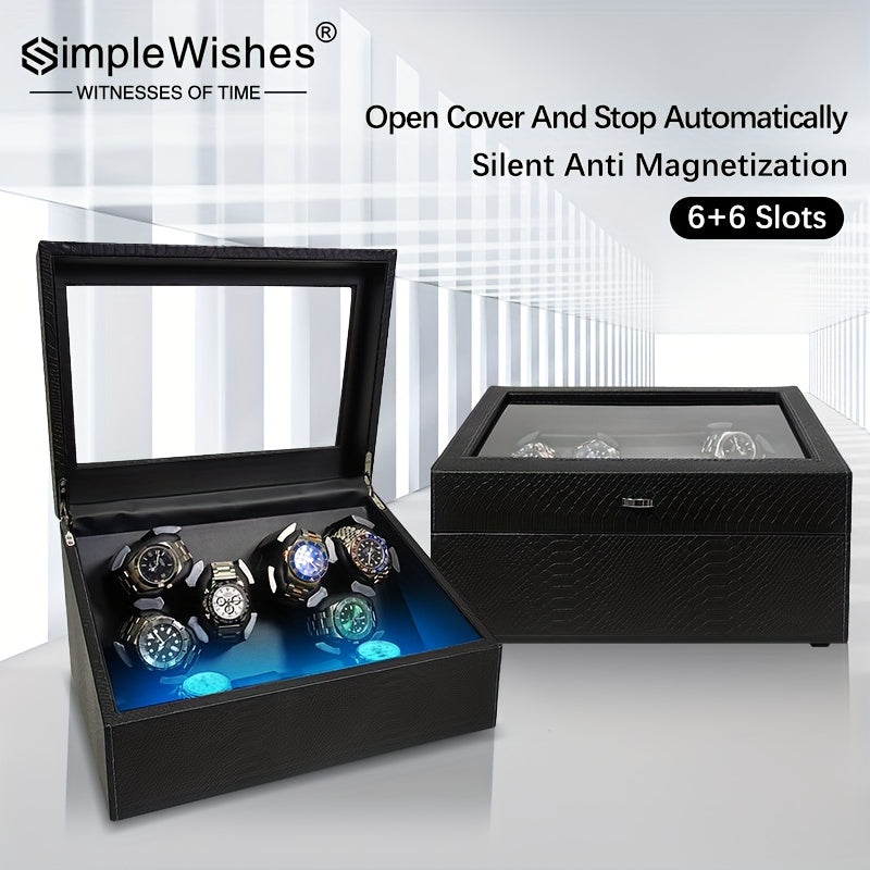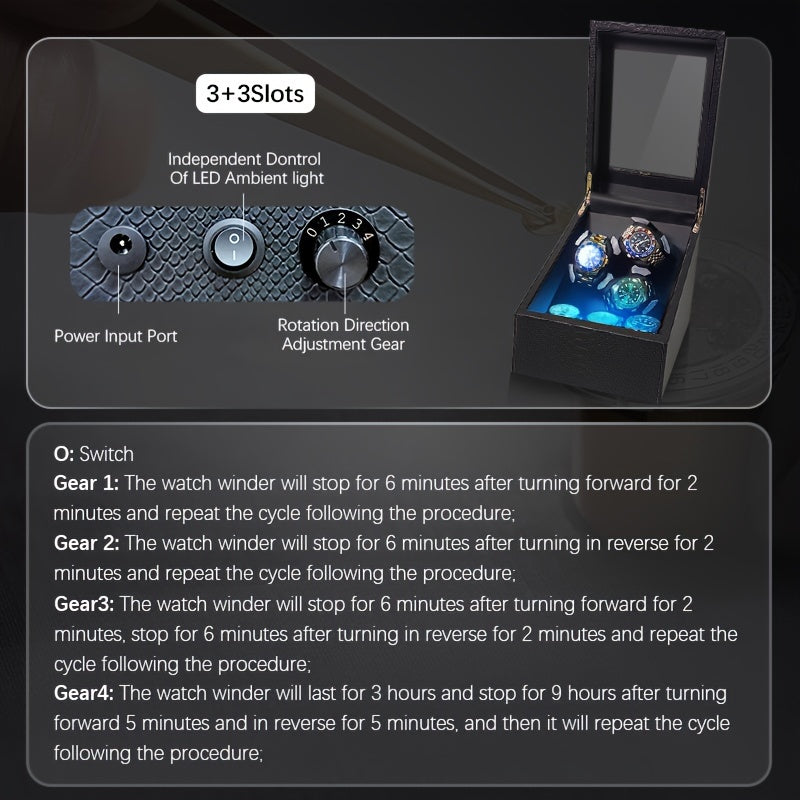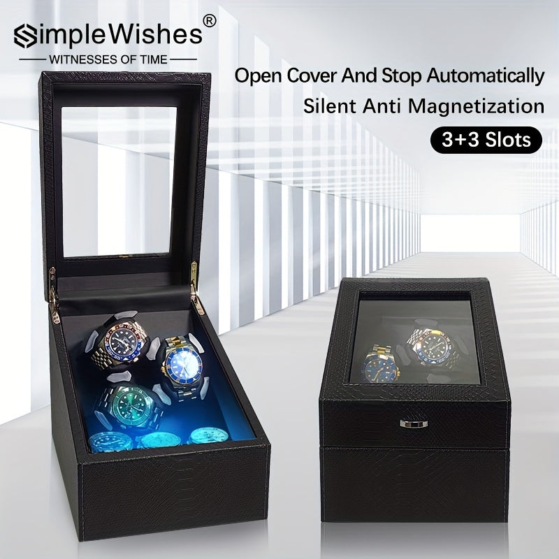 Avtomatik soatlar uchun 3/6 joyli, LED orqa yoritish va yumshoq yostiqchali hashamatli soat aylantiruvchi.