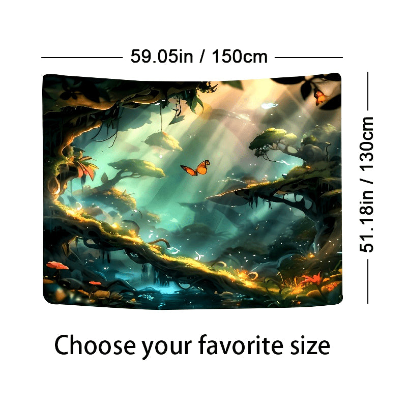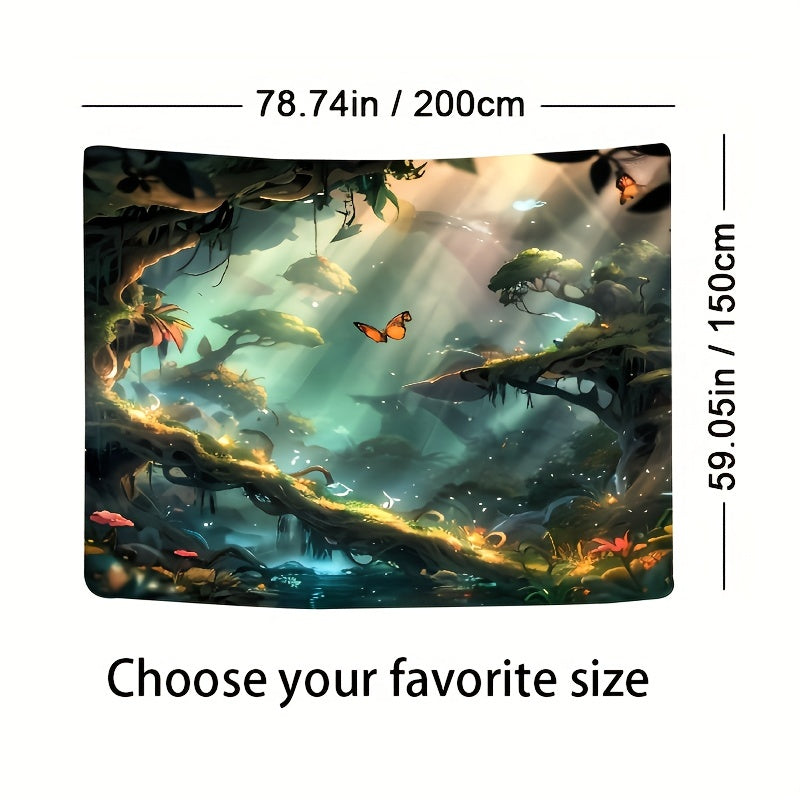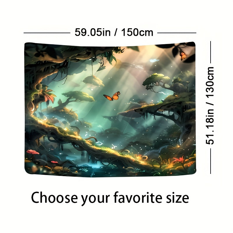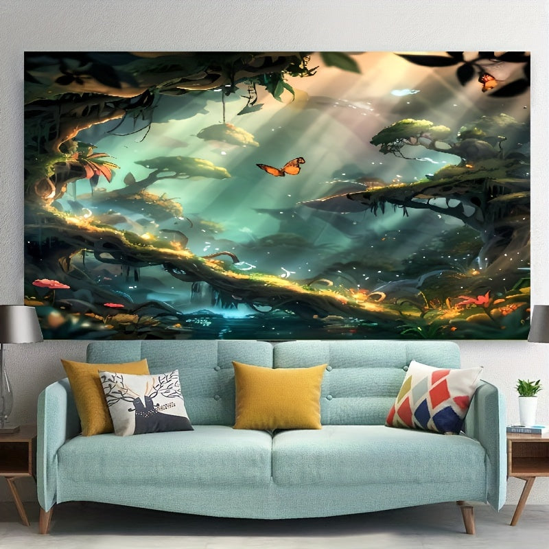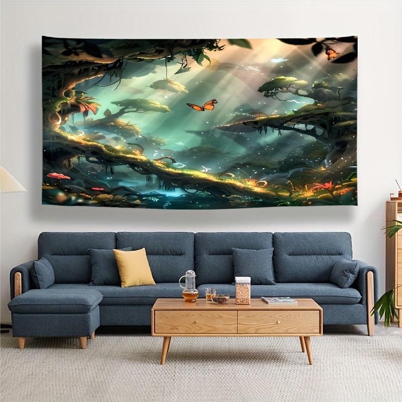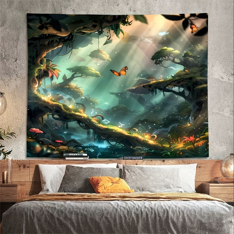 Sehrli Fantaziya Landşafti Devori San'ati - Uchar Qushlar Bilan Sehrlangan O'rmon Tapestri, Bolalar Xonasi va O'yin Xonasi Dekoratsiyasi Uchun Mukammal, Poliesterdan Yasalgan va Raqamli Bosma Bilan