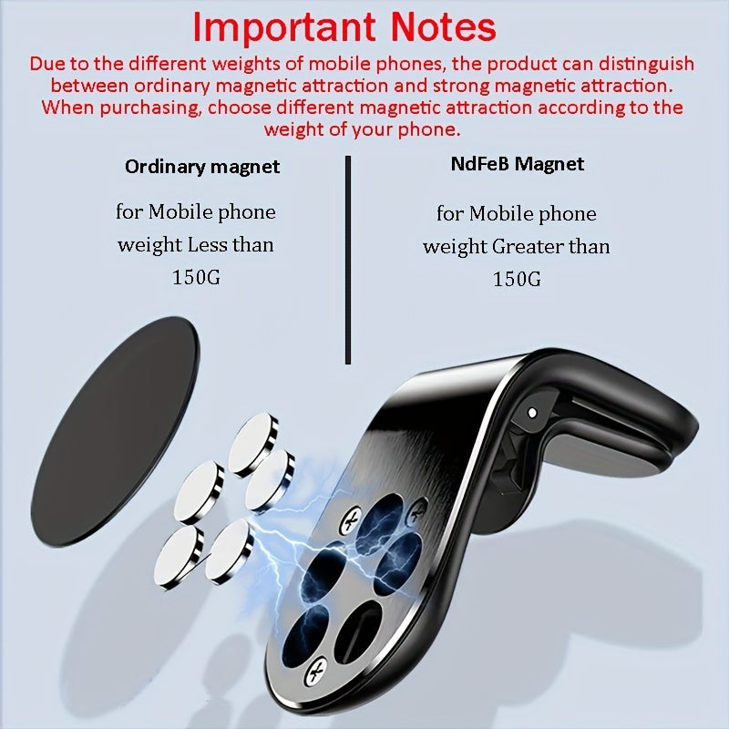 Magnitli avtomobil telefon uchun tutqich, L-shaklidagi havo chiqishi uchun o'rnatish, mobil telefon uchun