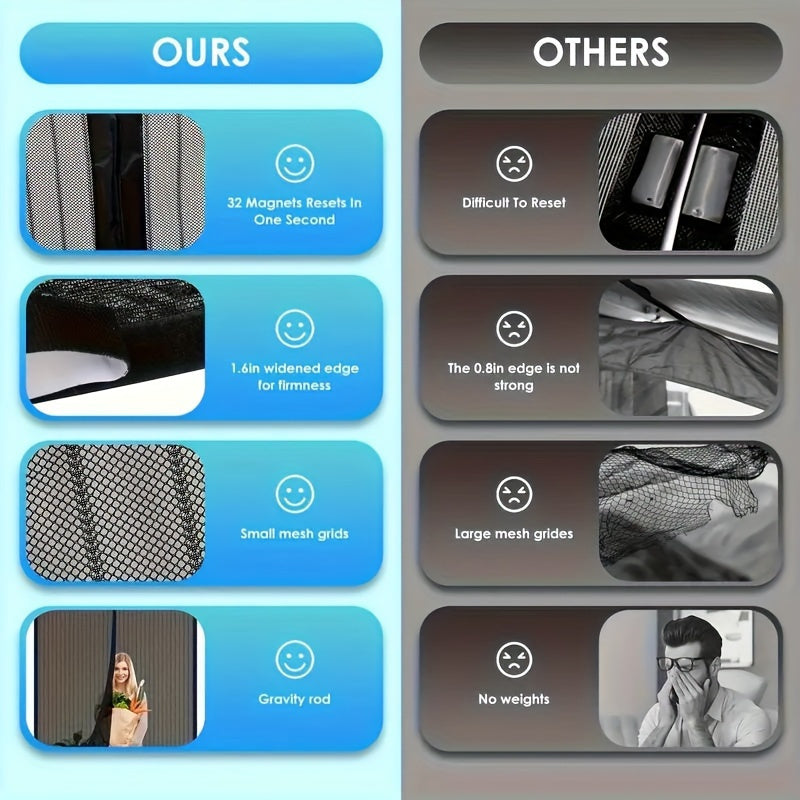 Magnit ekran eshigi, 91.44x208.28 sm - Oson tozalash, chivinlardan himoya, uy hayvonlariga qulay, qo'l bilan yopish kerak emas.